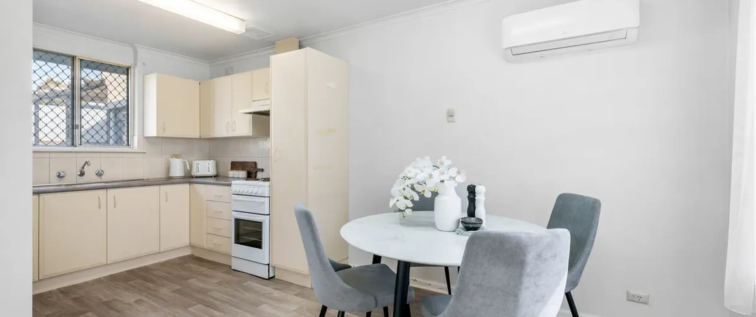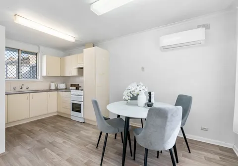 - Immaculate kitchen and meals area with ample storage space, pantry and split system air-conditioner