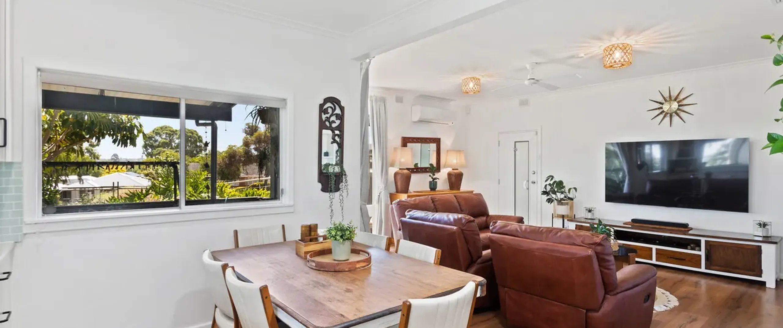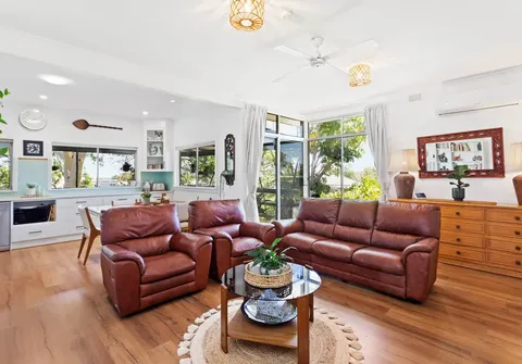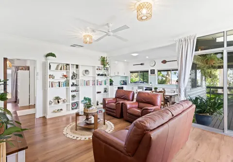 - Open plan living offering a ceiling fan and split system air conditioner