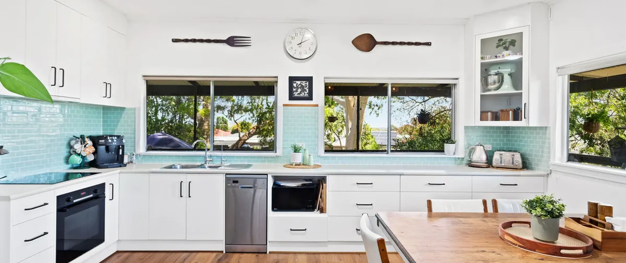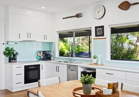 - Modern dine-in kitchen featuring pantry, ample soft-close cupboards and drawers, plenty of bench space and a dishwasher
