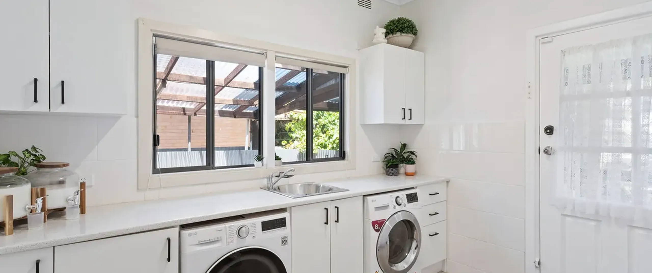 - Large light-filled laundry with built-in joinery and cupboards plus external access to the beautiful garden and undercover decking/verandah