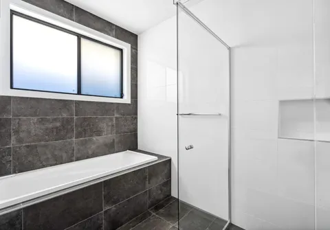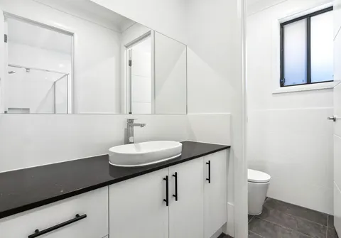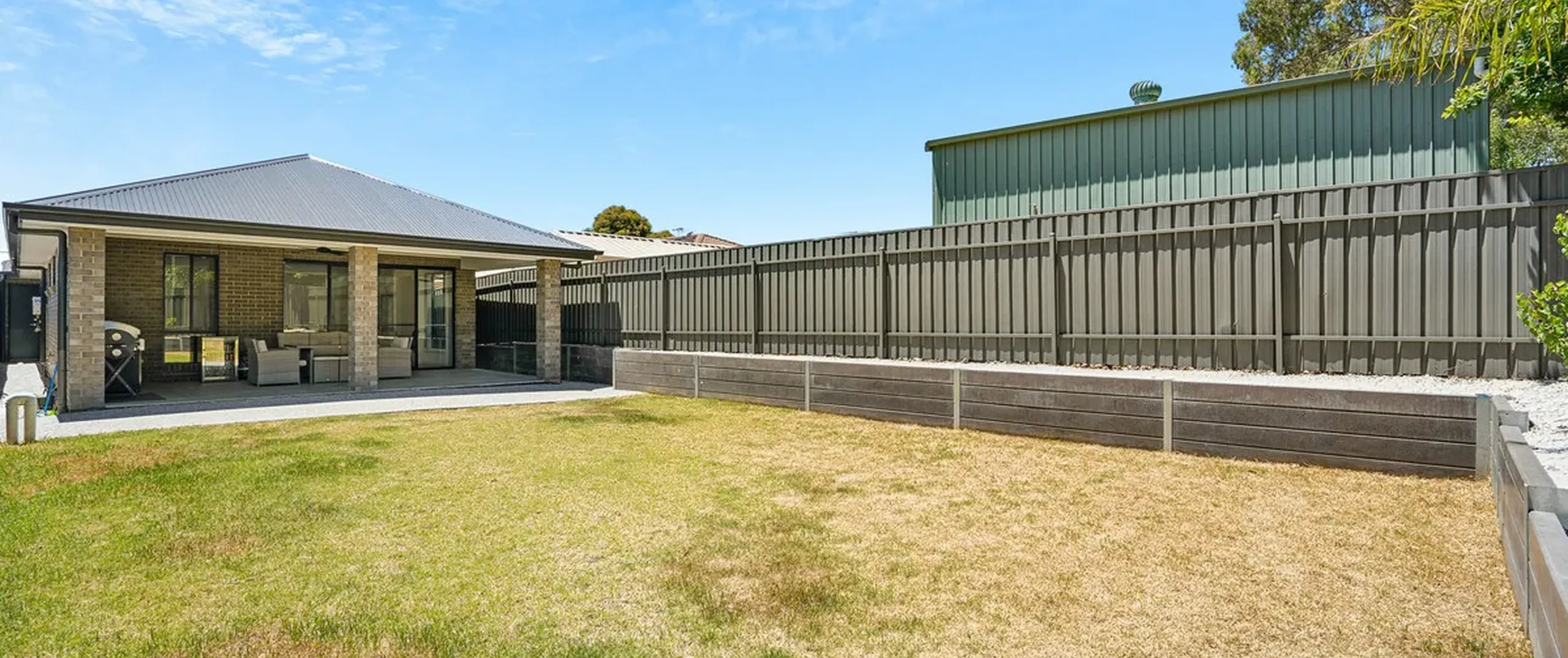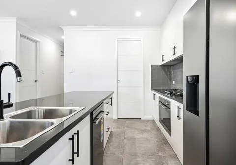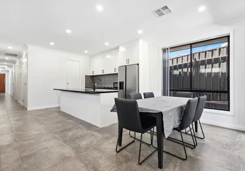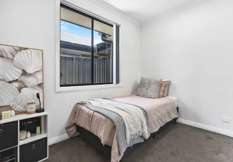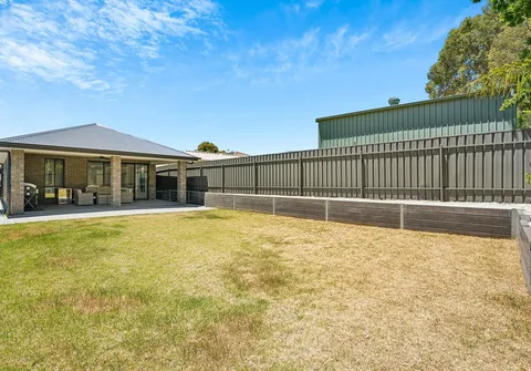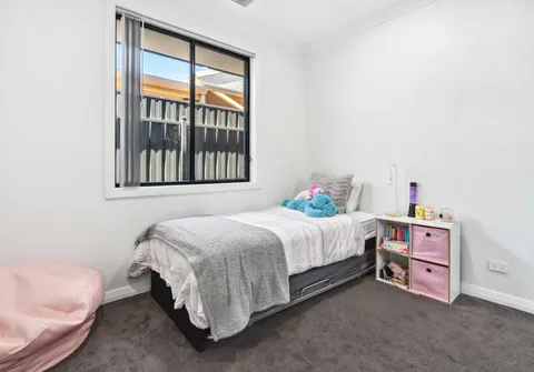 Boasting three bedrooms, a study, and two bathrooms, the home also features an open-plan family and dining area, the perfect hub for daily life. The sleek kitchen is equipped with a 900mm gas cooktop, oven, island bench with breakfast bar, and ample storage, including a spacious walk-in pantry. The expansive living area opens effortlessly to an alfresco dining space, complete with a ceiling fan, and low-maintenance landscaping with plenty of room—creating an ideal outdoor oasis.