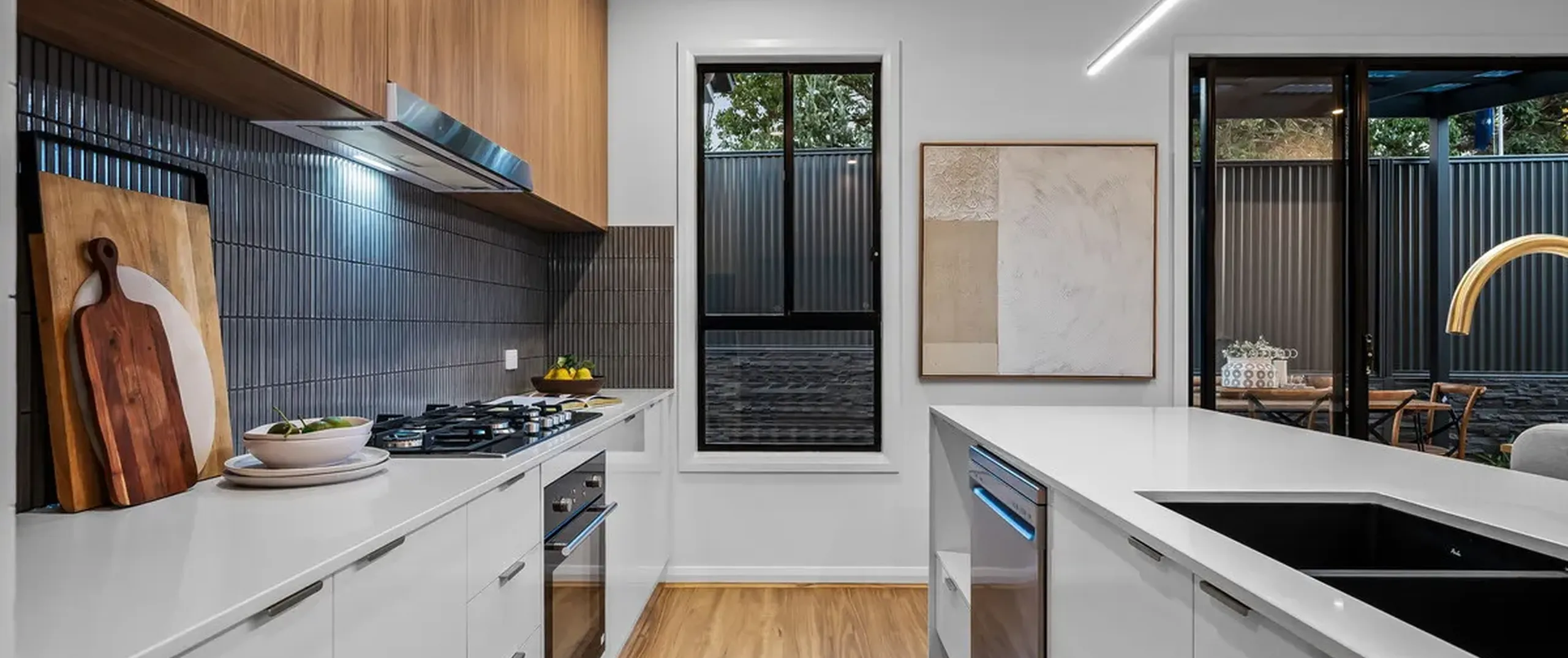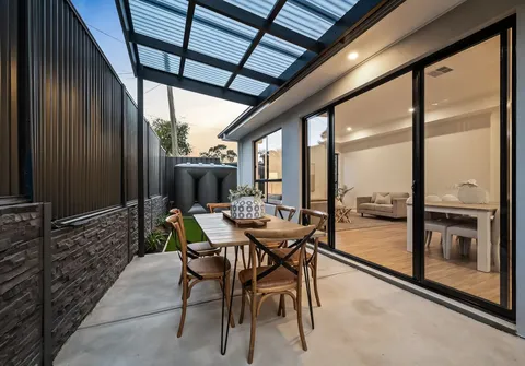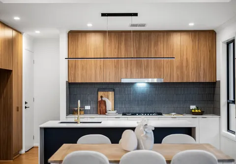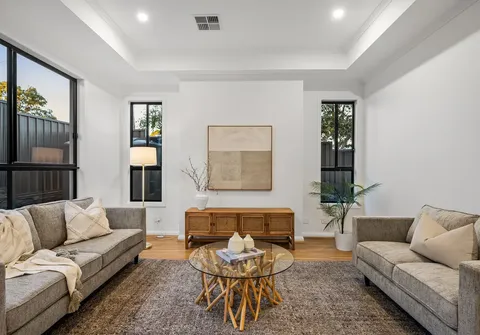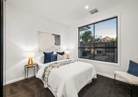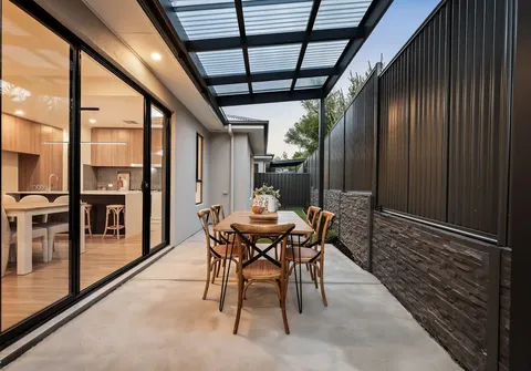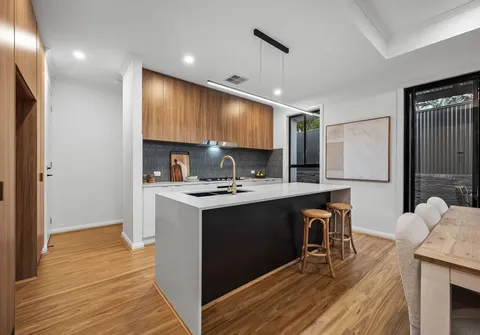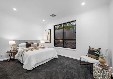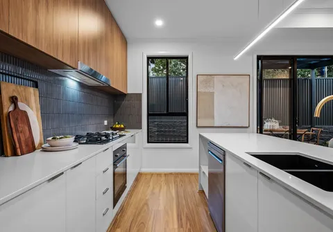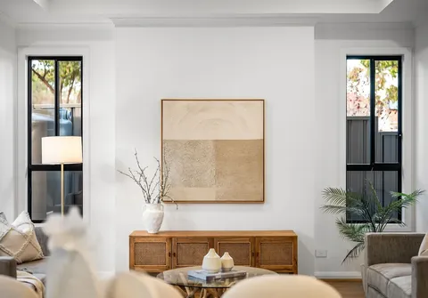 The centre of this home features a open-plan layout combining family room, dining and kitchen. Large windows bathe the space in natural light, while elegant 3m coffered ceilings and stylish pendant fixtures add character. The ducted reverse cycle air conditioning ensures year-round comfort. Sliding doors allow for seamless indoor-outdoor entertaining in the low maintenance yard where you can sit and enjoy all this home has to offer with friends and family.