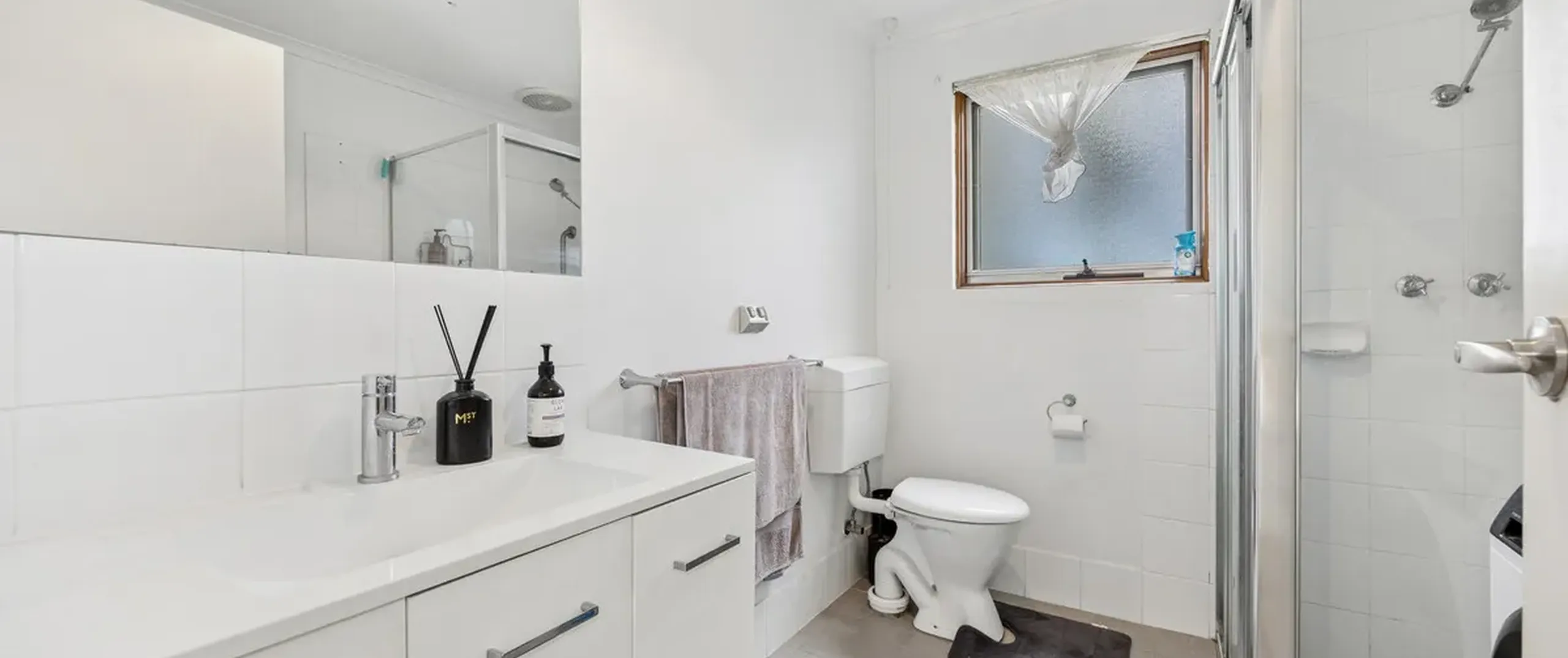 - Renovated bathroom/laundry combination with shower, toilet and vanity