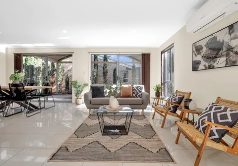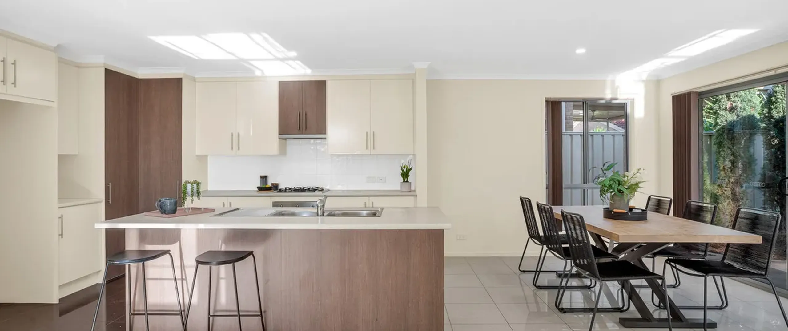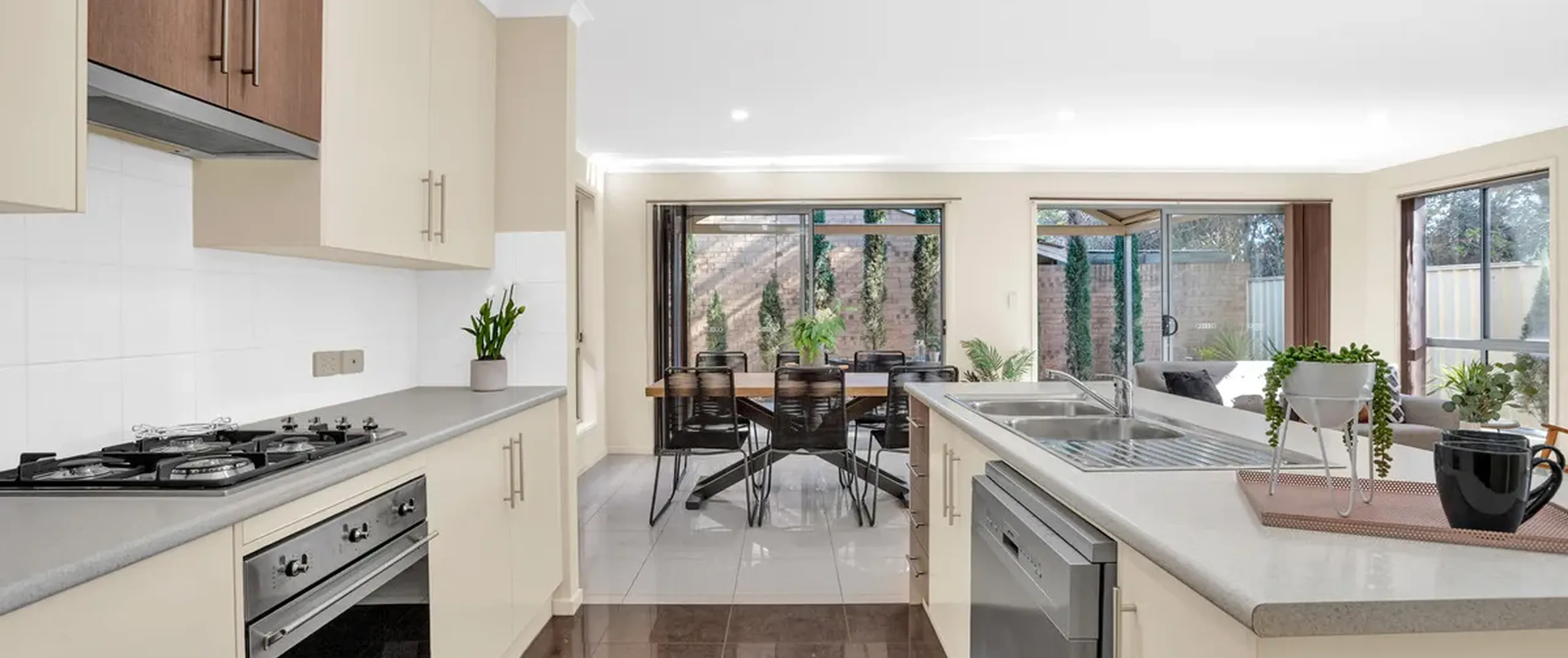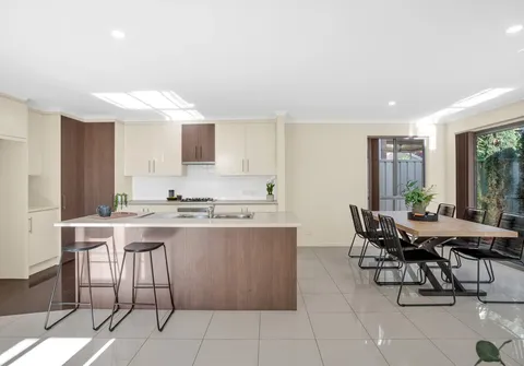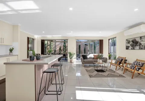 There is an expansive pitched pergola ready for all-weather entertaining, while inside an open plan layout has been perfectly crafted for year-round convenience. There is also a well-equipped kitchen with ample cupboard and bench space as well as new SMEG appliances.