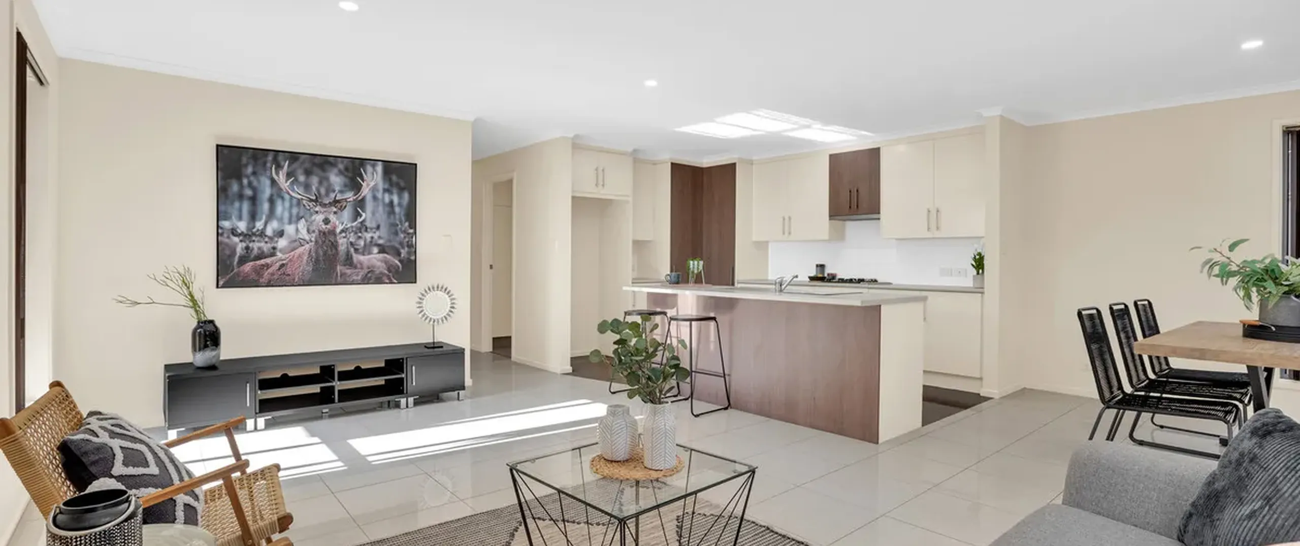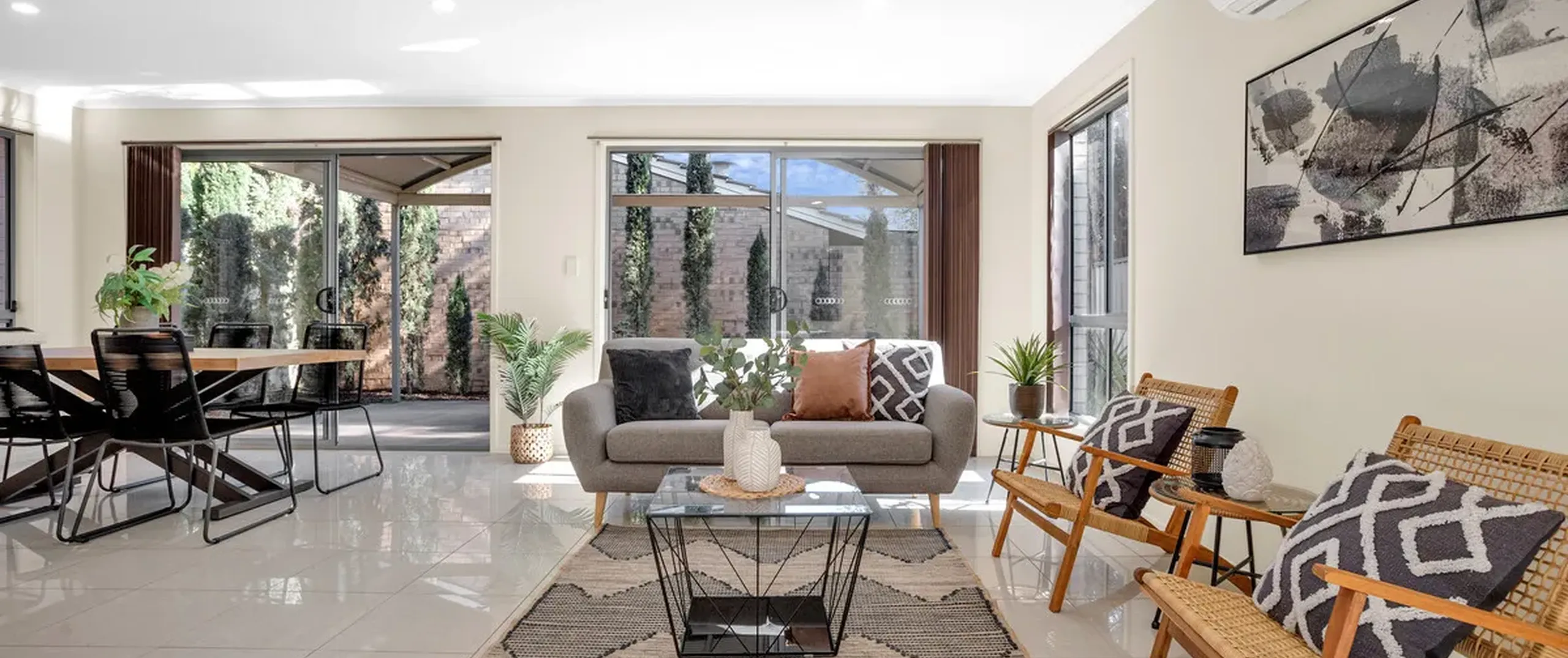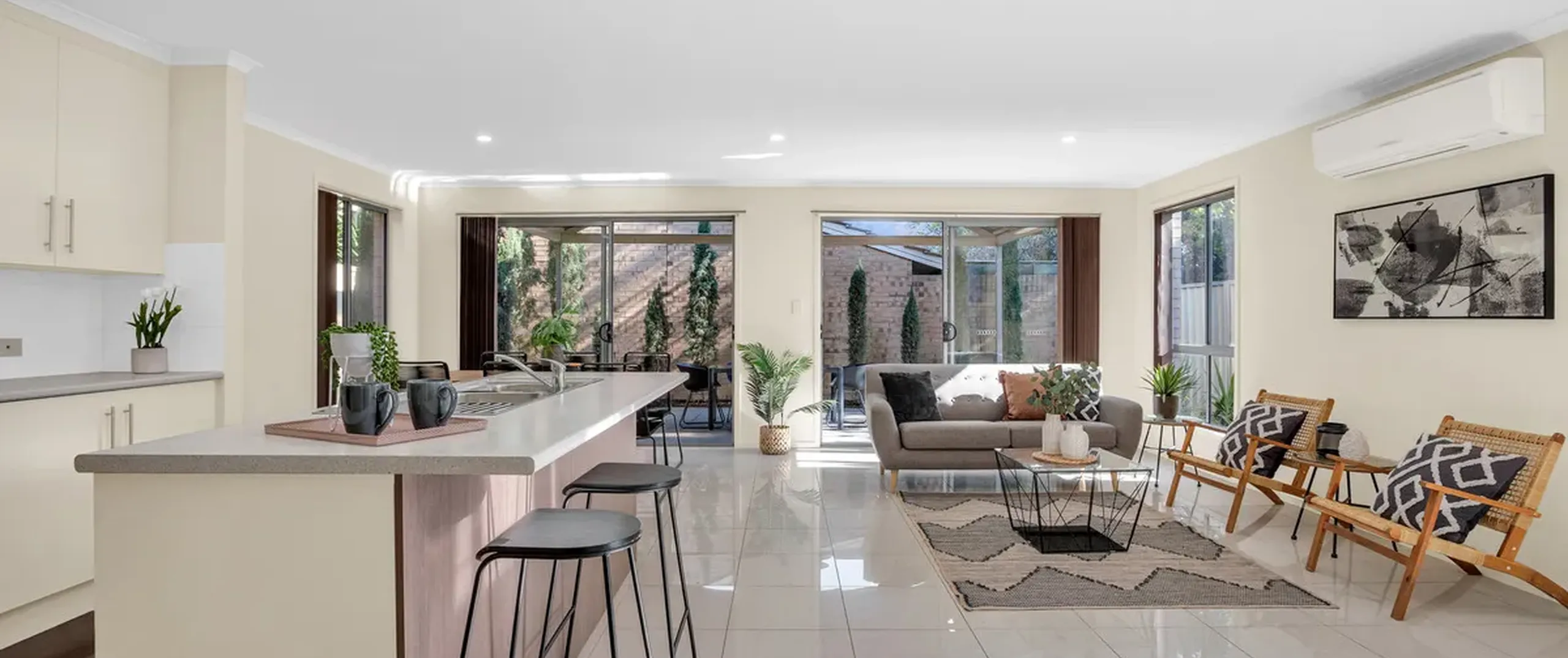 There is an expansive pitched pergola ready for all-weather entertaining, while inside an open plan layout has been perfectly crafted for year-round convenience. There is also a well-equipped kitchen with ample cupboard and bench space as well as new SMEG appliances.