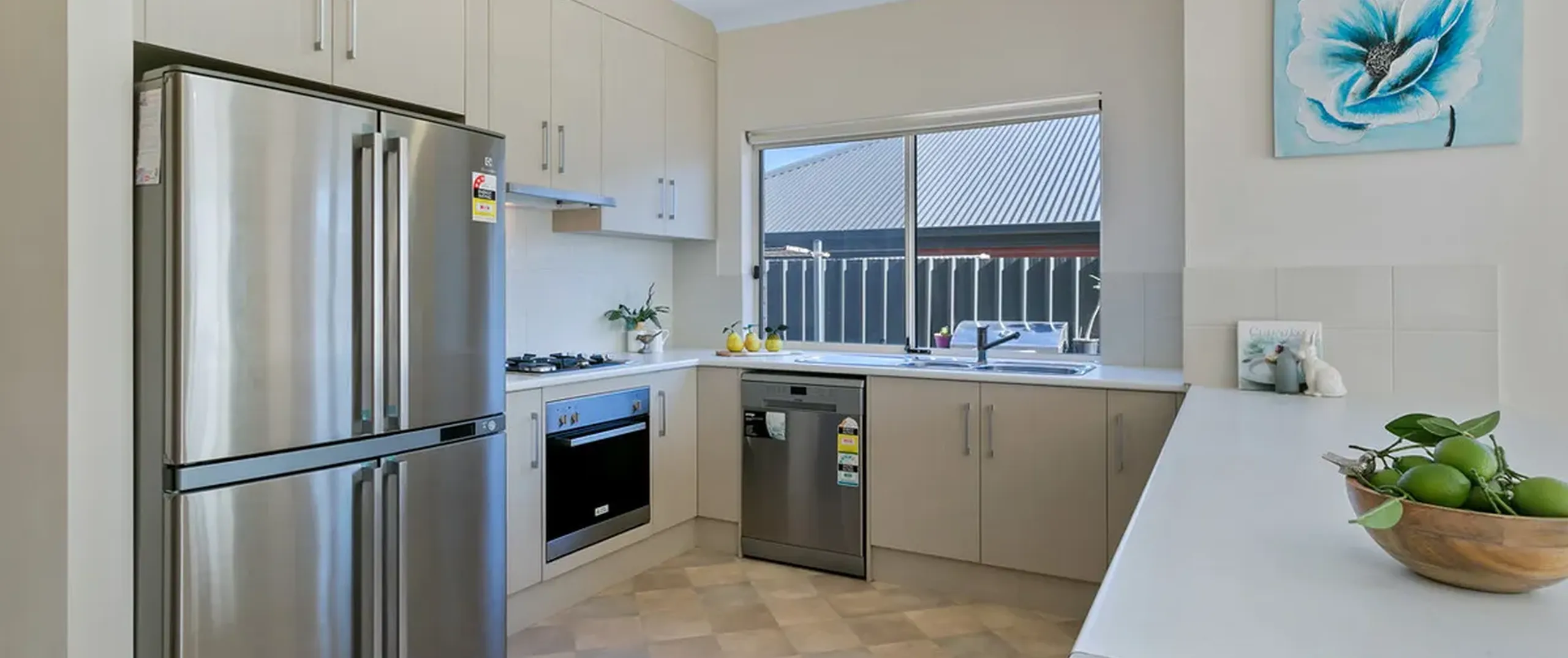 - Modern kitchen with gas cooktop, dishwasher and ample bench and cupboard space