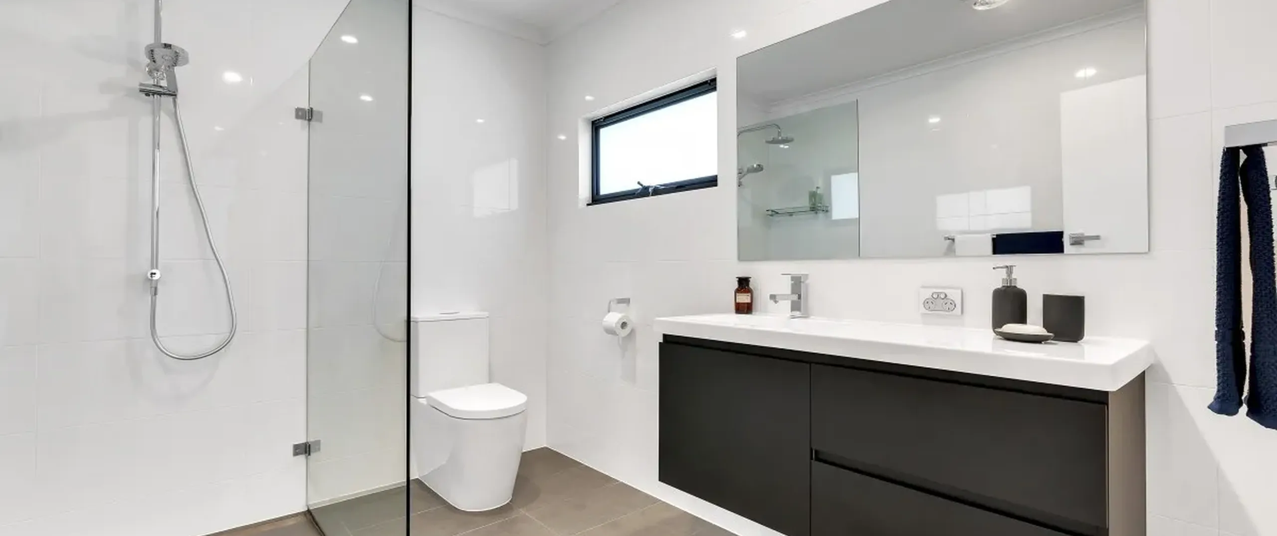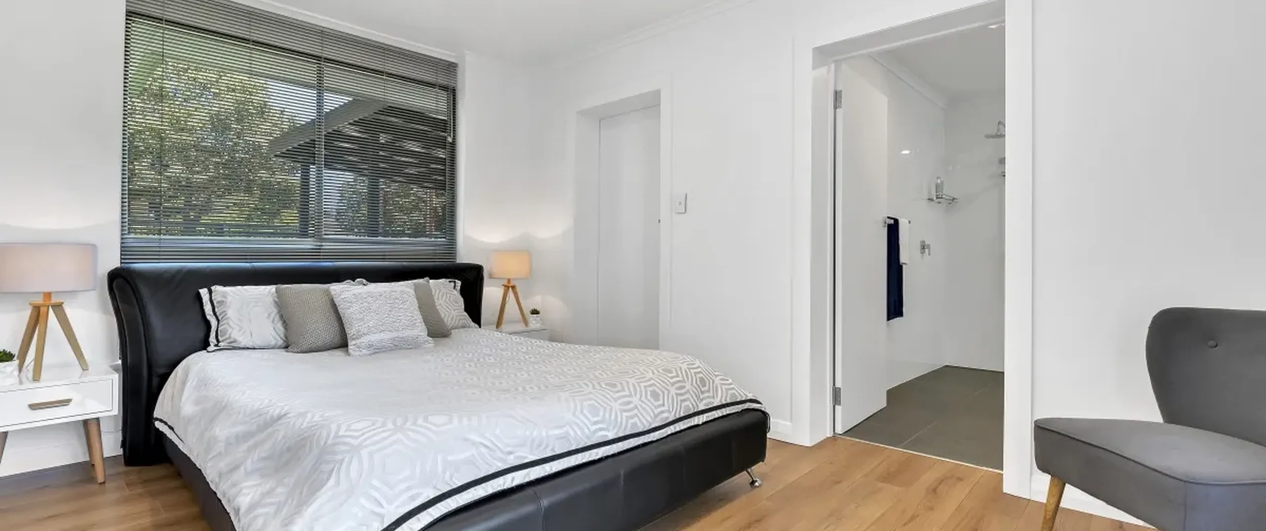 - Large master bedroom with huge walk-in robe that offers plenty of cupboard space and spectacular on trend ensuite with floor to ceiling tiles and quality fittings