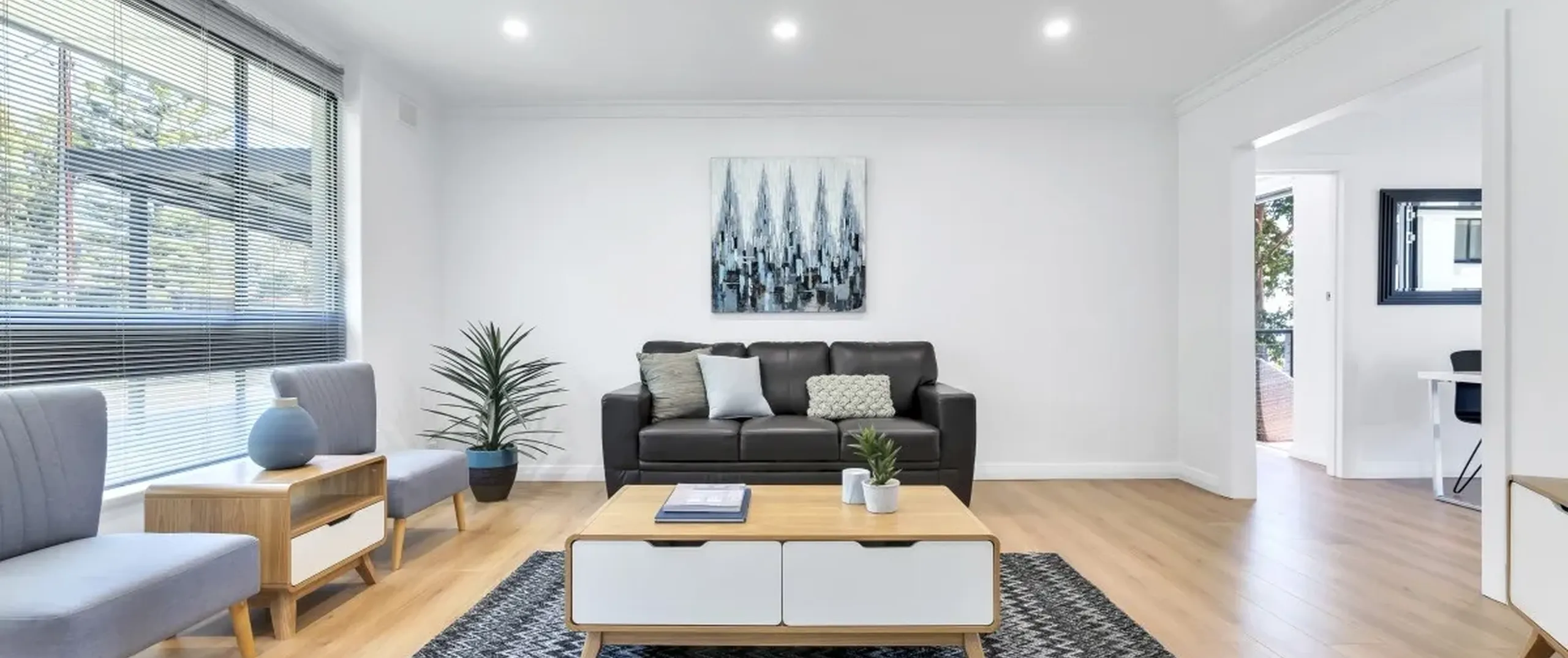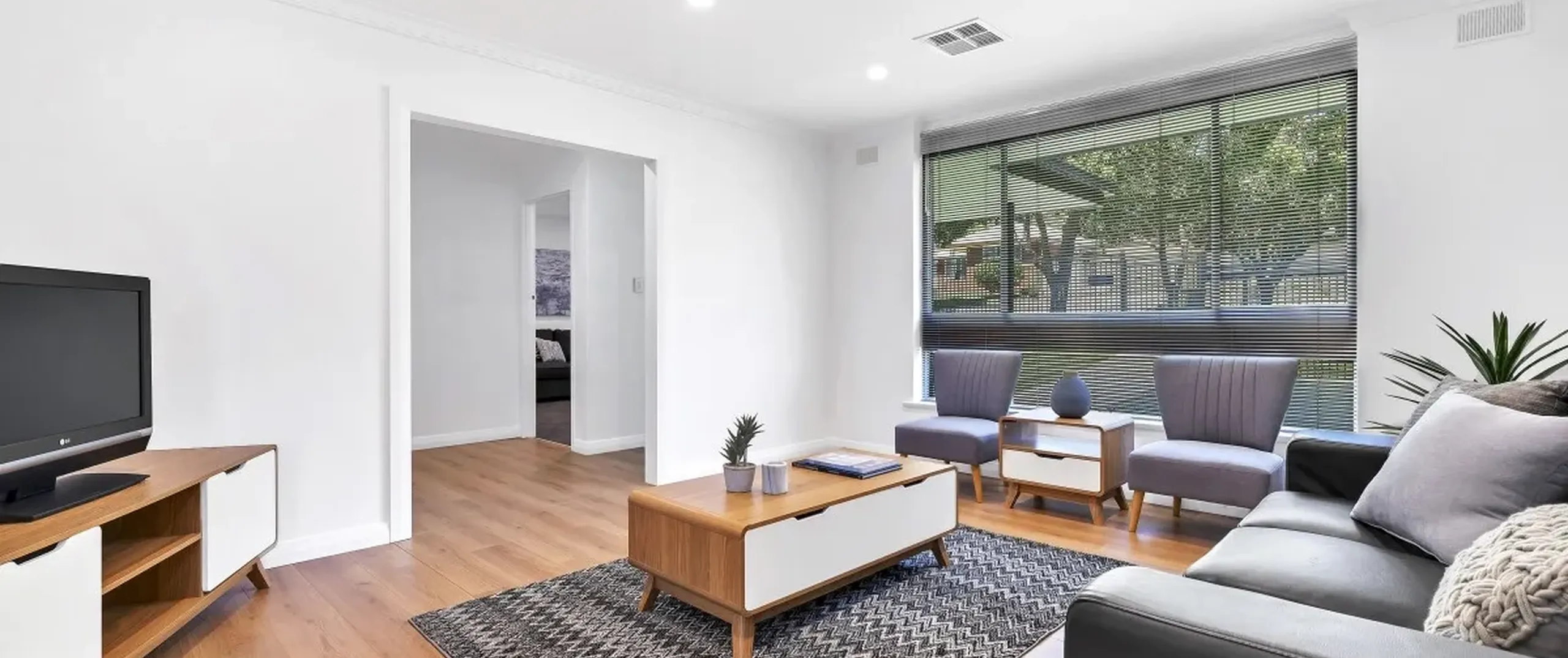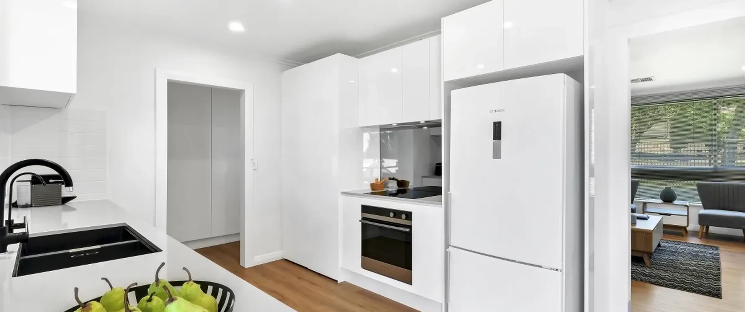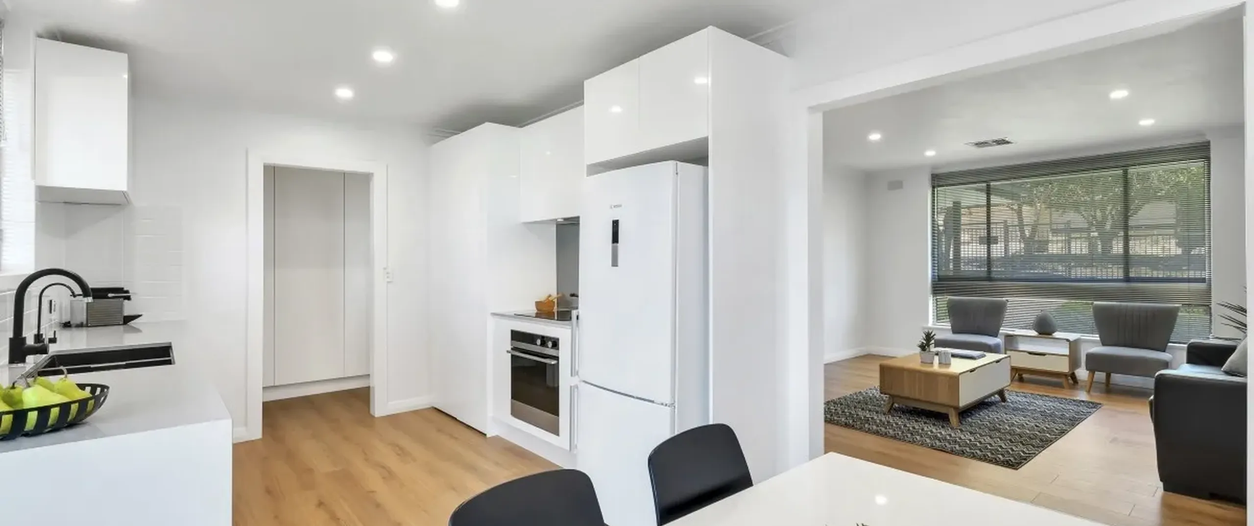 - Spacious light filled living area with stunning new floating floor boards