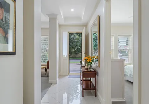 Outdoors, the commodious pitched roof pergola is the perfect setting to share with family and friends, accessed directly from the living space and framed beautifully by manicured landscaping.