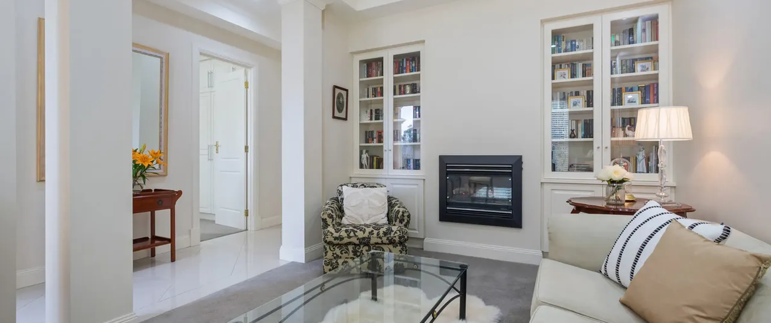 - Light-filled and captivating formal lounge upon entry featuring charming gas fire heater and built-in cabinets