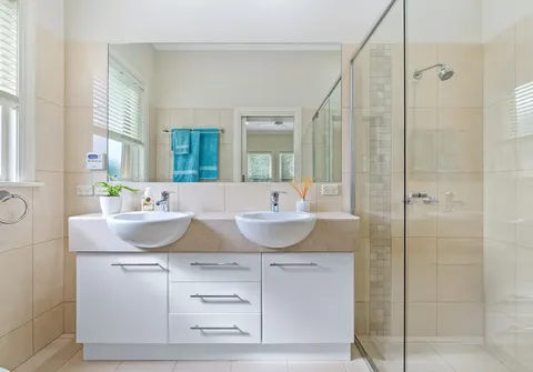 - Generous master bedroom complete with ceiling fan, two built-in robes and ensuite complete with his and hers basin and a double shower
