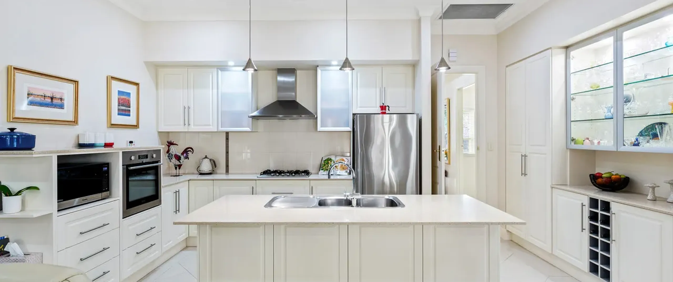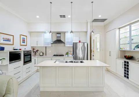 - Beautifully appointed kitchen with timeless features, including an Asko dishwasher, Asko Oven, Euro gas cooktop, pantry, built-in wine storage, ample cupboard space, sweeping stone bench tops and breakfast bar
