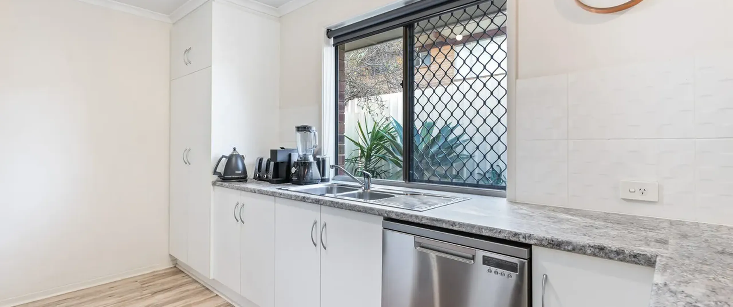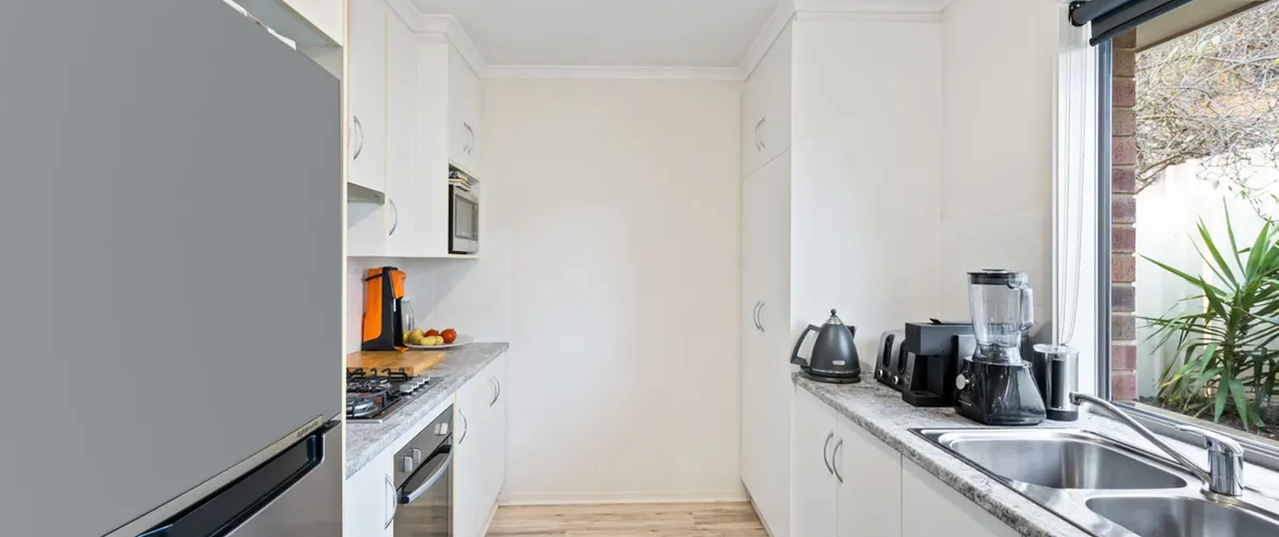 - Functional laundry with linen cupboard and external access