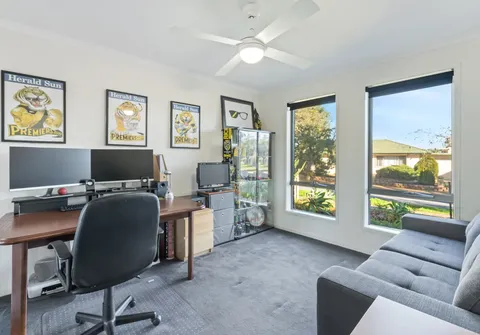 Inside, you will find a practical layout consisting of two good sized bedrooms, a spacious open-plan lounge and dining area adjoining to the kitchen. For all to enjoy, a great sized outdoor entertaining area is the perfect space for you to escape with a good book. Completing the well-designed floorplan is a valuable study/home office and a secure double garage.