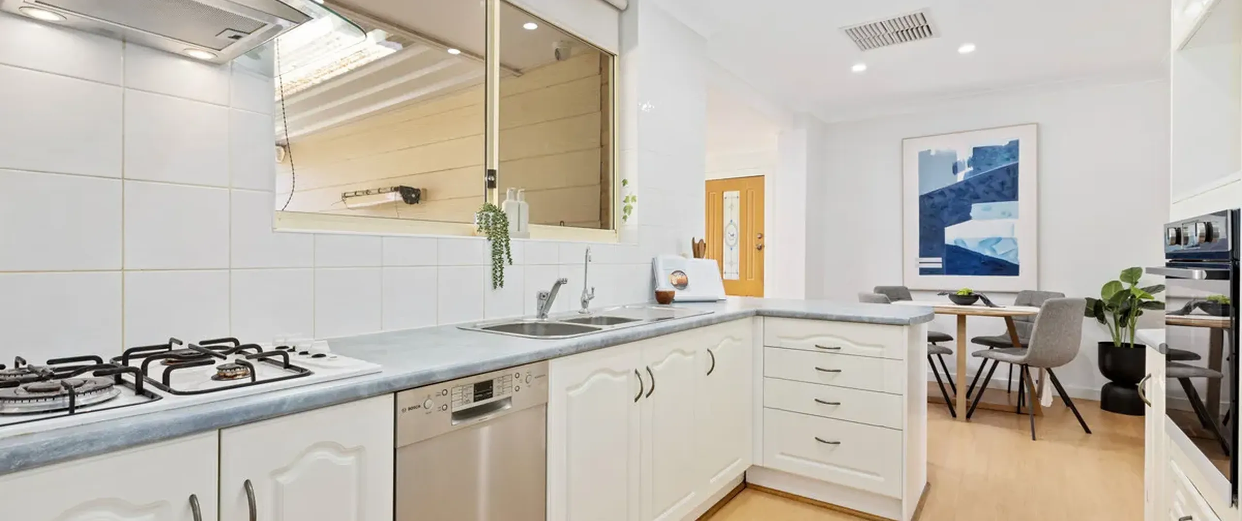 - Charming kitchen with dishwasher, gas cooktop, pantry and abundance of cupboard and bench space