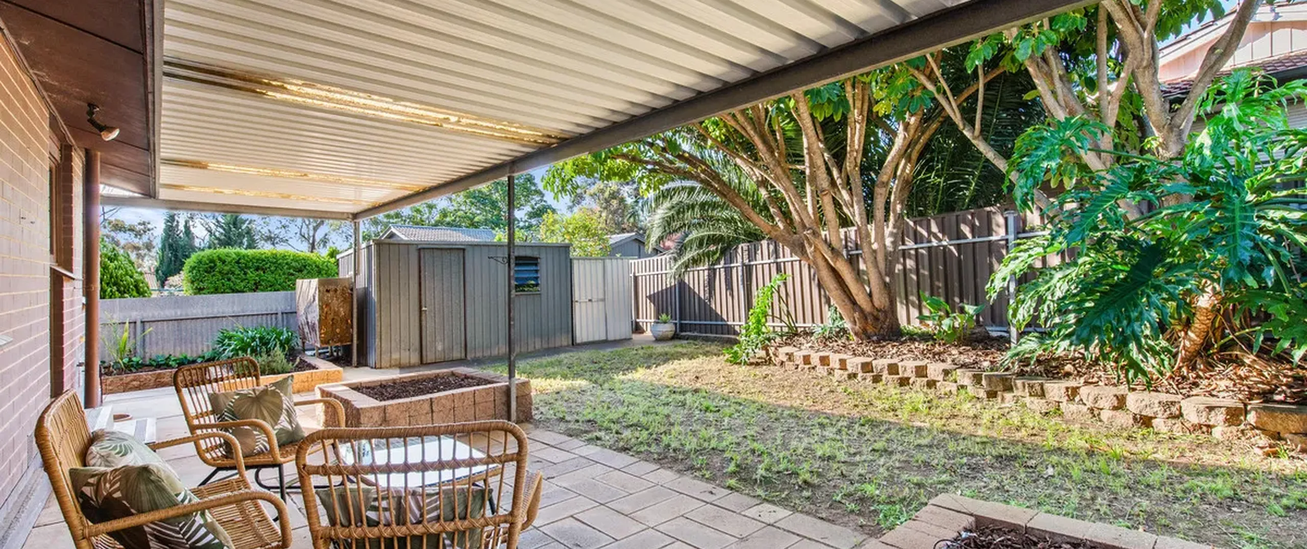 - Fully fenced backyard offering garden beds and grass area for kids and pets to enjoy
