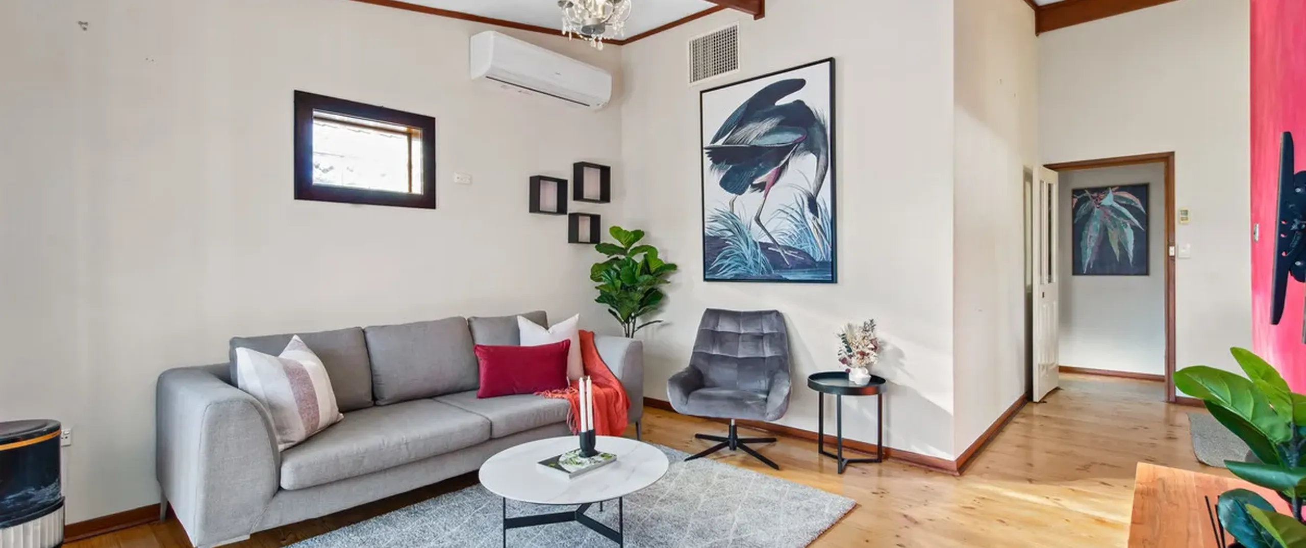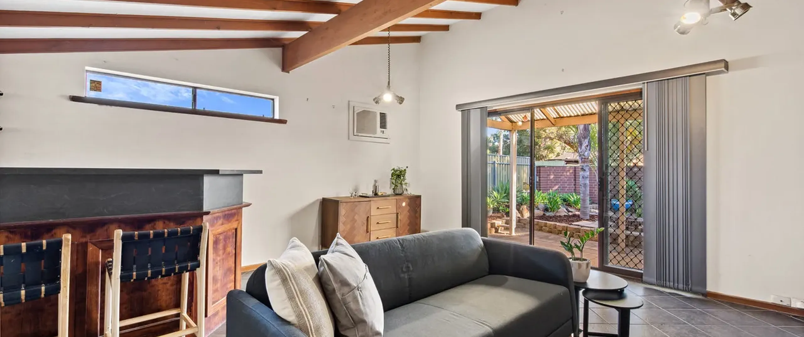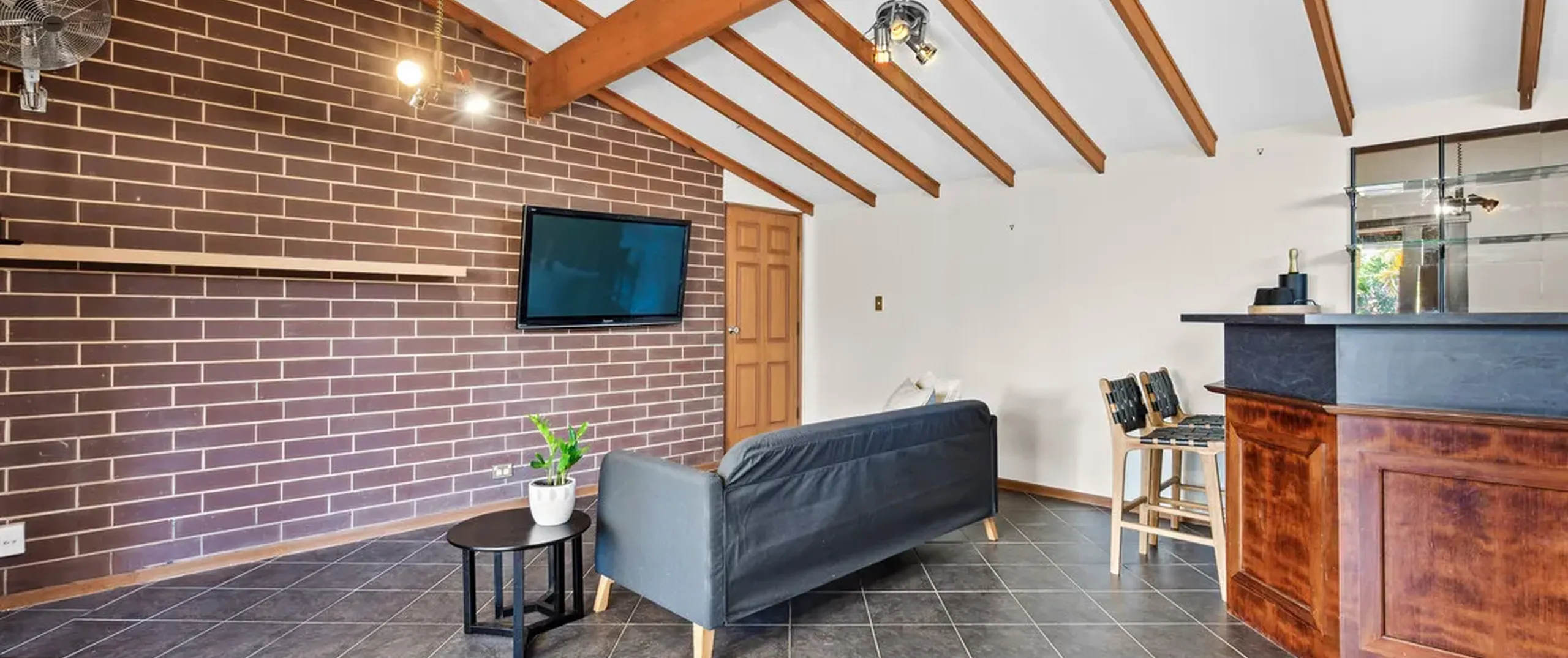 - Lounge room with gas heater and split system air conditioning for year-round comfort