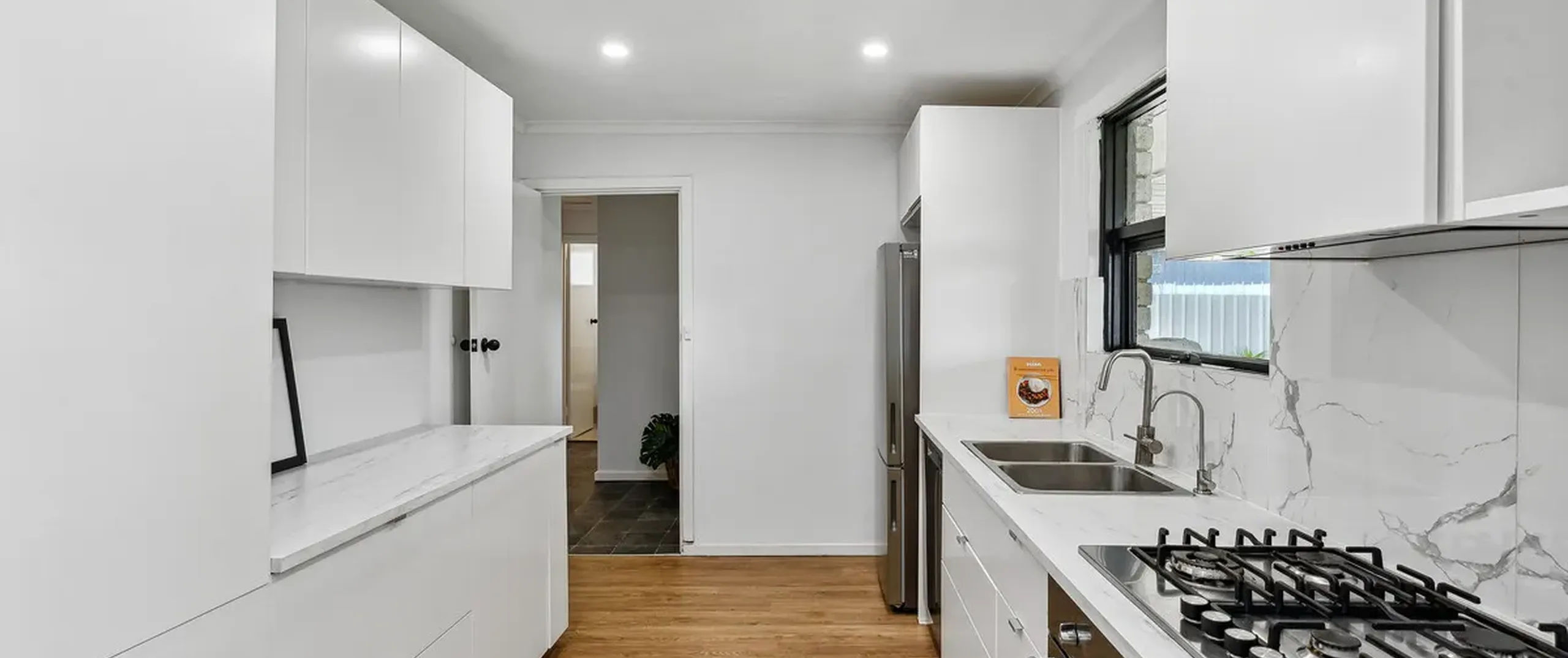 - Timeless, renovated open-plan kitchen and meals area with on-trend fixtures and fittings