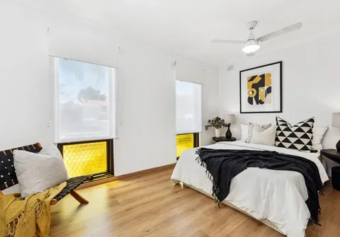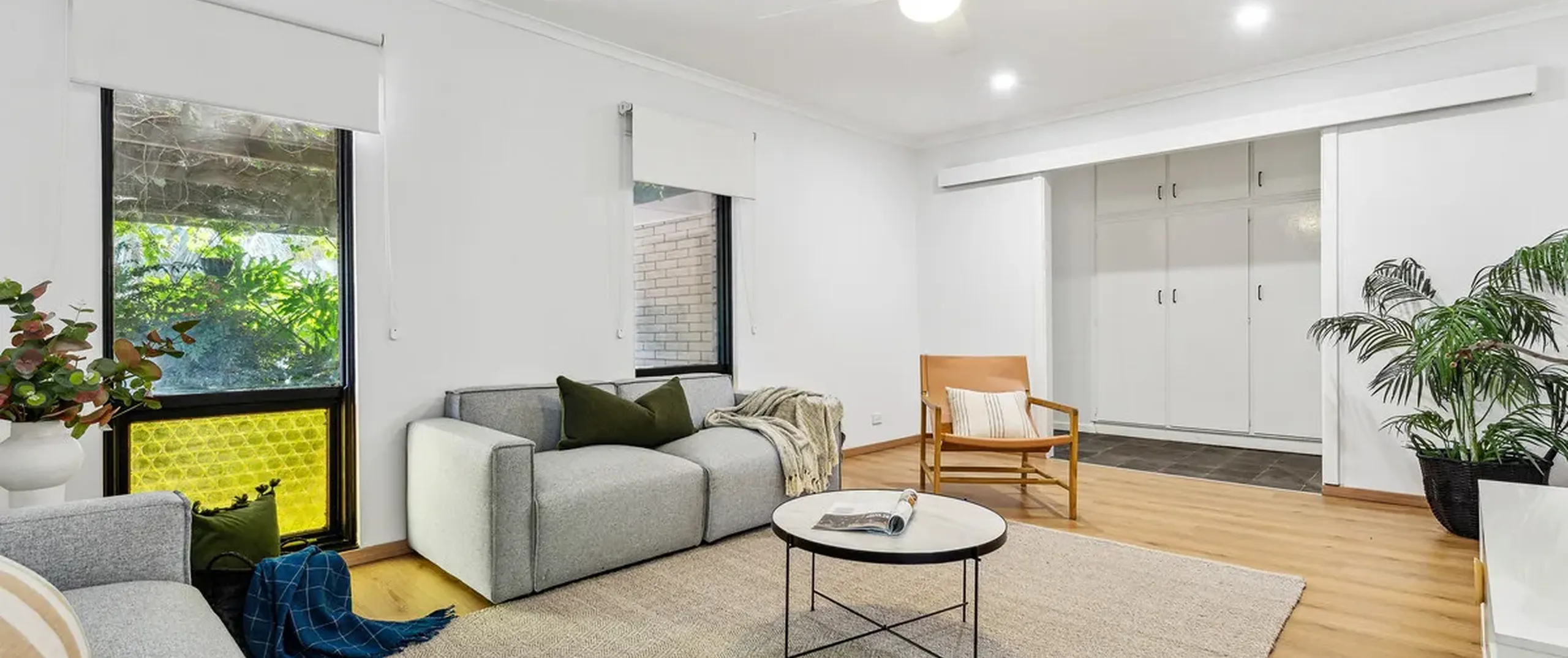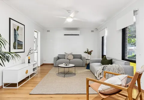 - Light-filled lounge room with ceiling fan and split-system air-conditioner that's WIFI enabled
