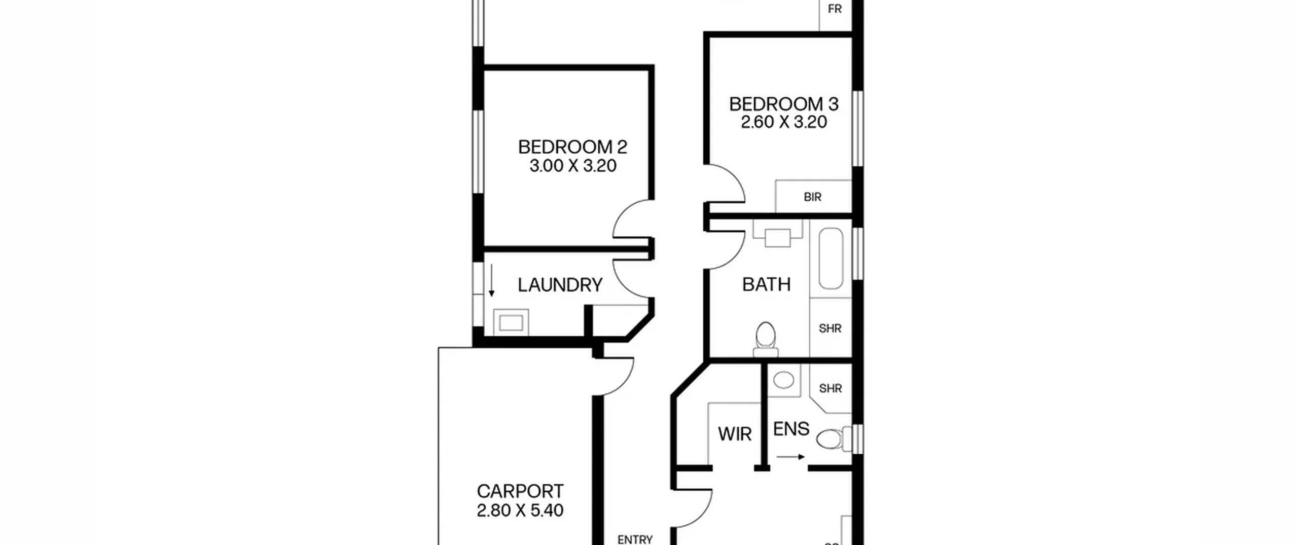 - Bedroom 2 and 3, with bedroom 3 featuring a built-in robe