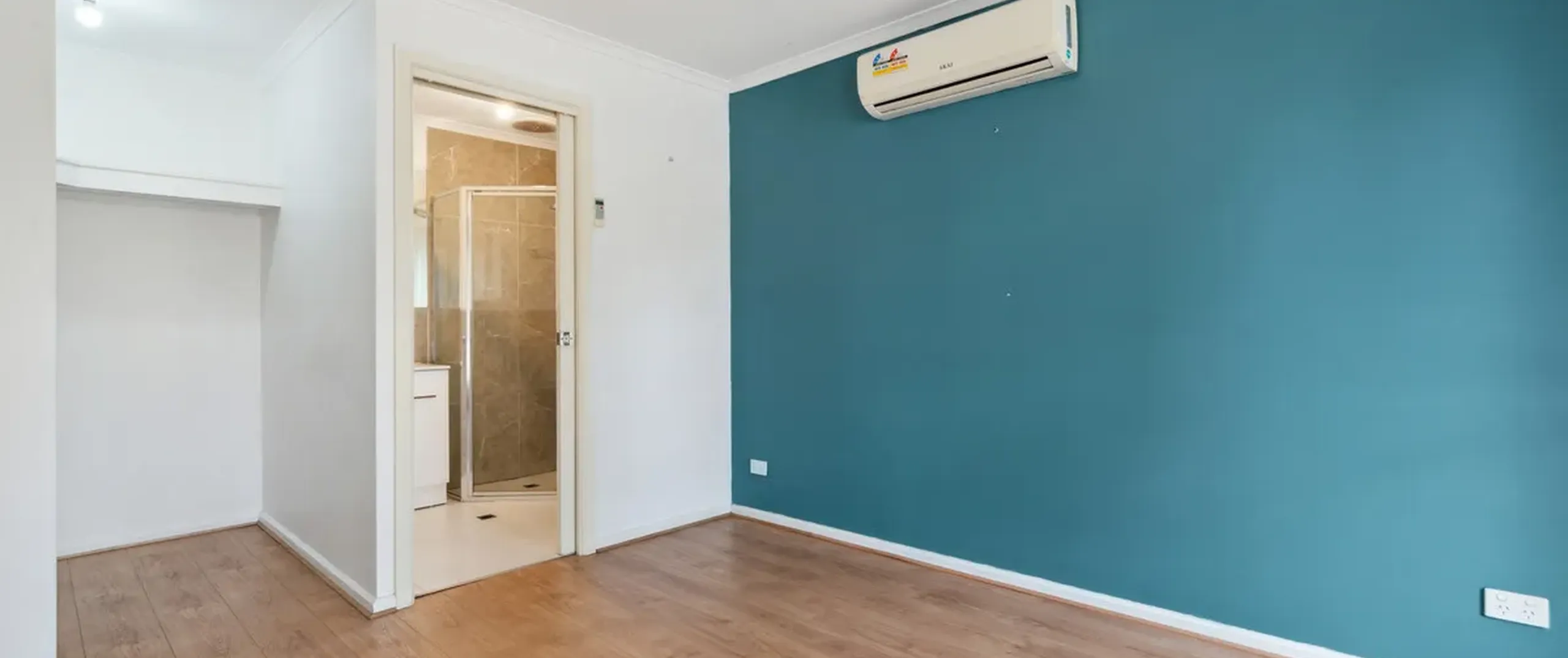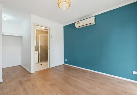 - Master bedroom with walk-in robe, ensuite, and split-system air-conditioner