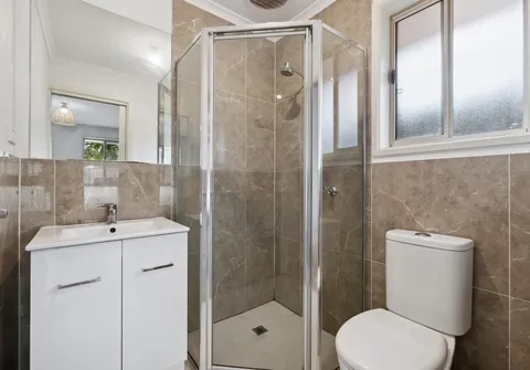 - Spacious open plan living and dining area with a split-system air conditioner for year-round comfort