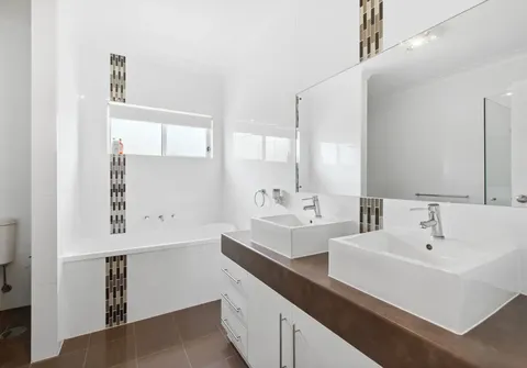 - Large master bedroom with walk-in robe, ensuite with double basin vanity, bath, shower and toilet