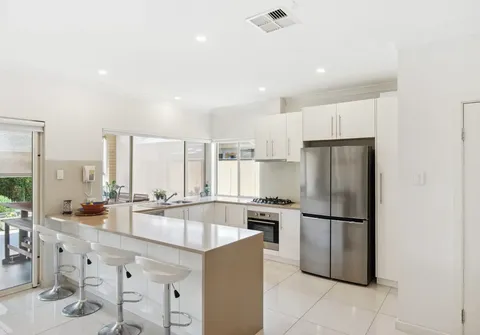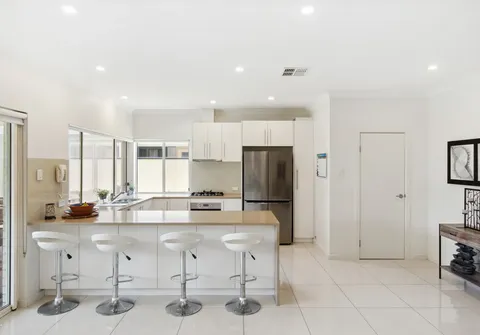 From the moment you step inside and pass by the valuable and spacious separate lounge, you’ll be welcomed by the inviting open planned living space, the true heart of the home. The open-concept design offers additional space for family activities or quiet relaxation. The seamless flow continues into the elegant dining room and timeless modern kitchen, featuring sweeping countertops, a gas cooktop, and a dishwasher—a true haven for culinary enthusiasts. Large, crisp tiles throughout add a touch of sophistication to the space.