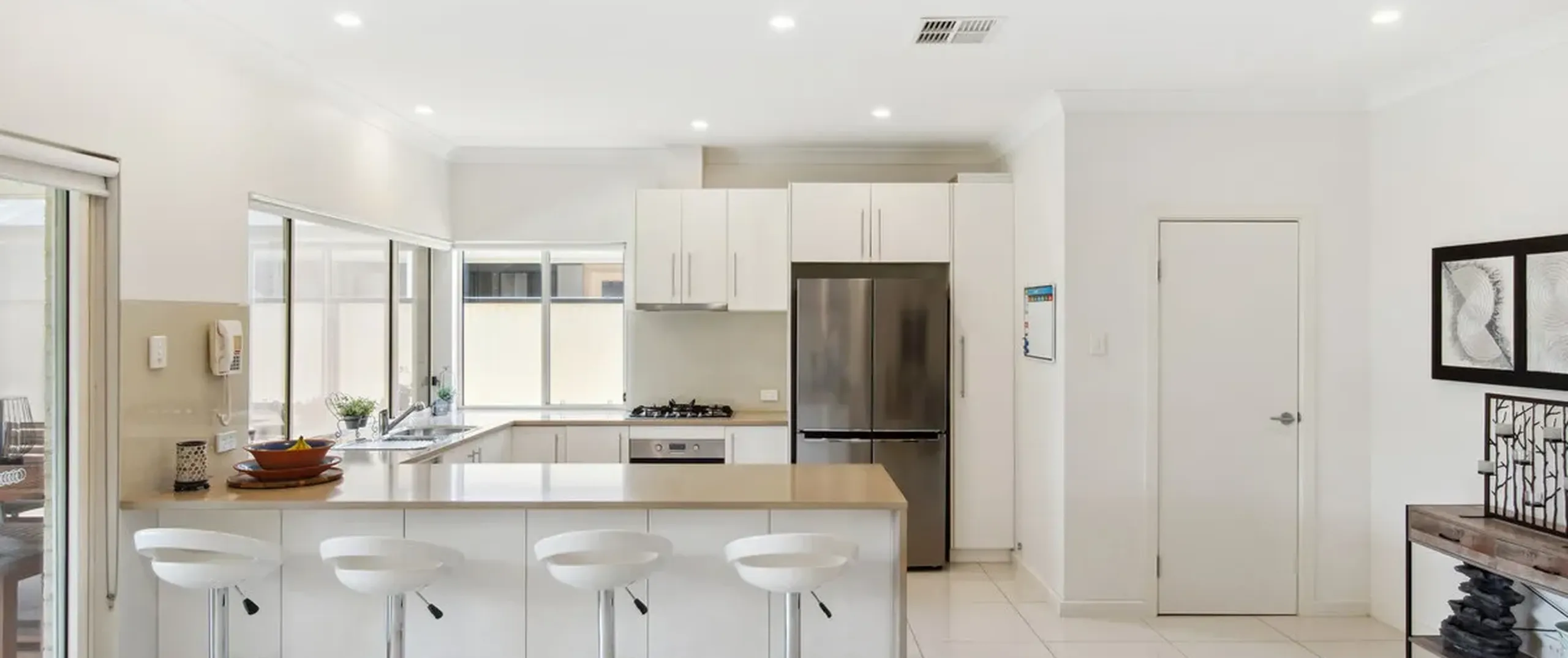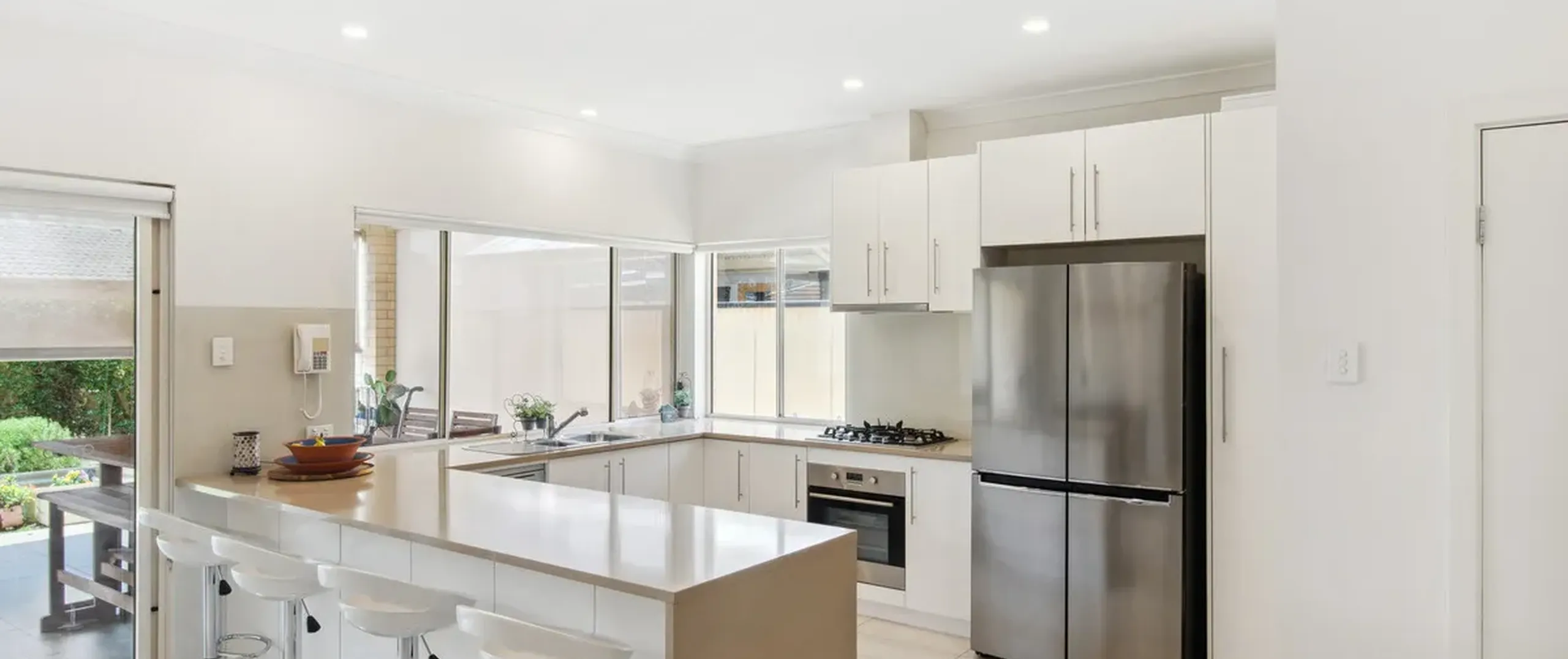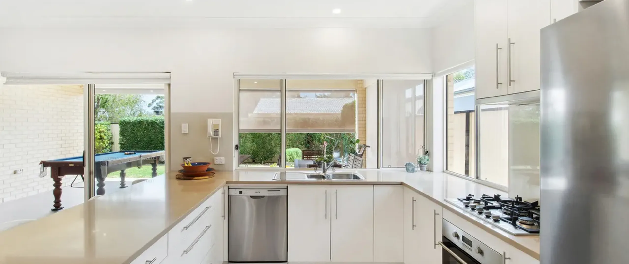 - Timeless kitchen with 900mm gas cook top, ample storage space, walk-in pantry, dishwasher and breakfast bar