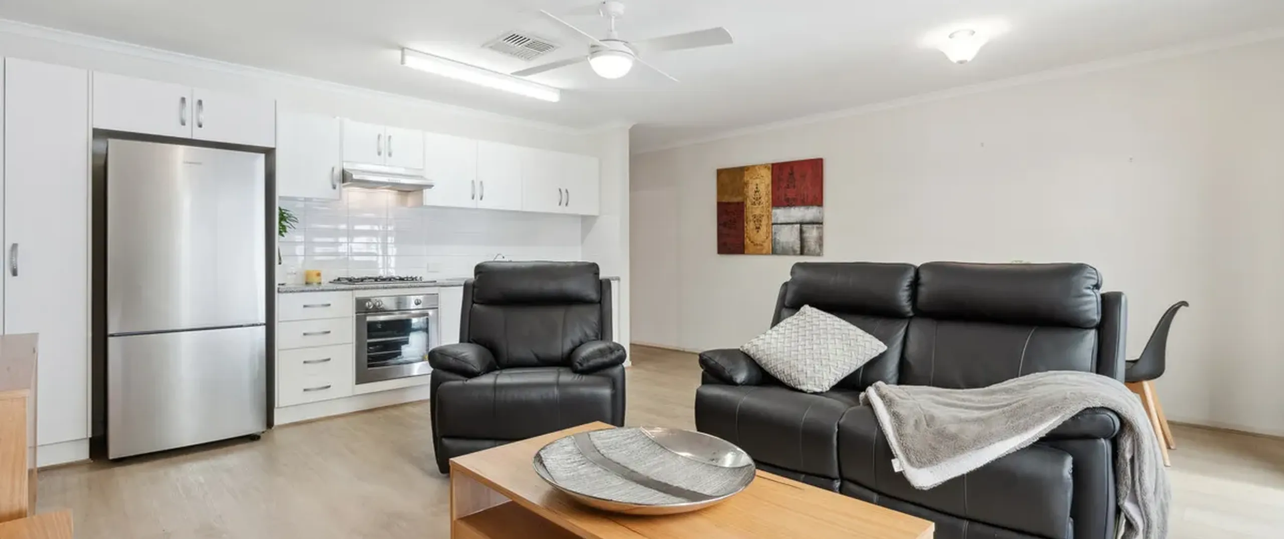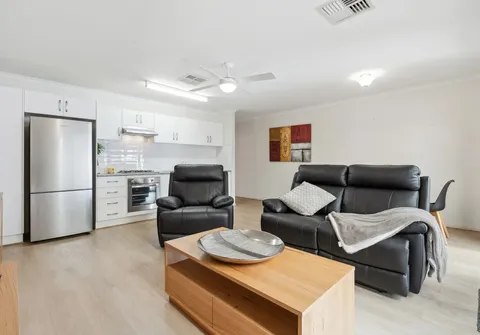 Step inside to discover two well-appointed bedrooms, both featuring built-in robes. The spacious, light-filled living area seamlessly connects to the modern kitchen and open-plan meals area, creating a warm and inviting space for everyday living and effortless entertaining. The immaculate bathroom is thoughtfully designed and includes the added convenience of a second toilet. Meanwhile, the secure rear-entry carport offers both privacy and easy access.