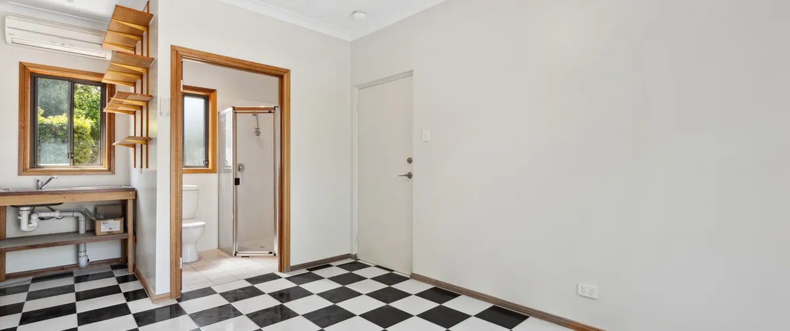- Studio room with its own bathroom, air conditioner, and sink, with direct access from the driveway and carport