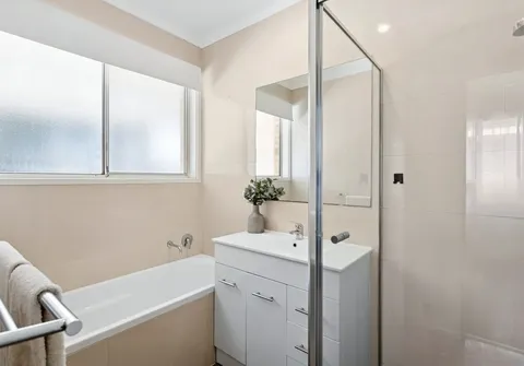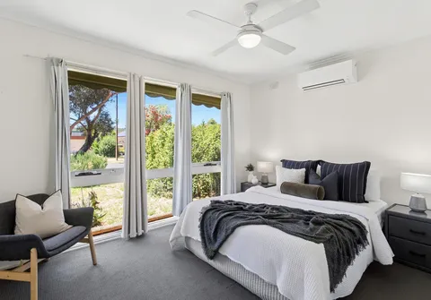 The light-filled main bedroom is complete with a split system air conditioner, ceiling fan and built-in robe, while bedrooms two and three offer flexibility for family, guests or a home office. Centrally positioned, the bathroom features a shower, bath and vanity, with a separate toilet adding everyday convenience.