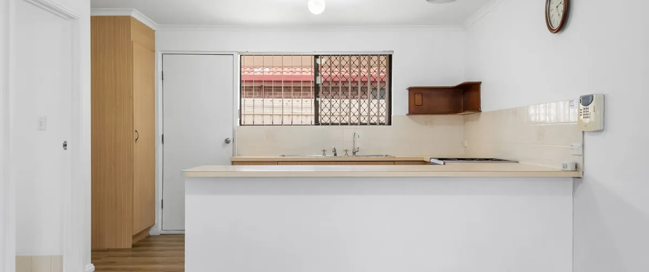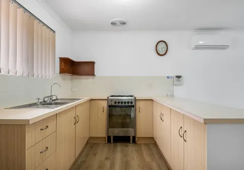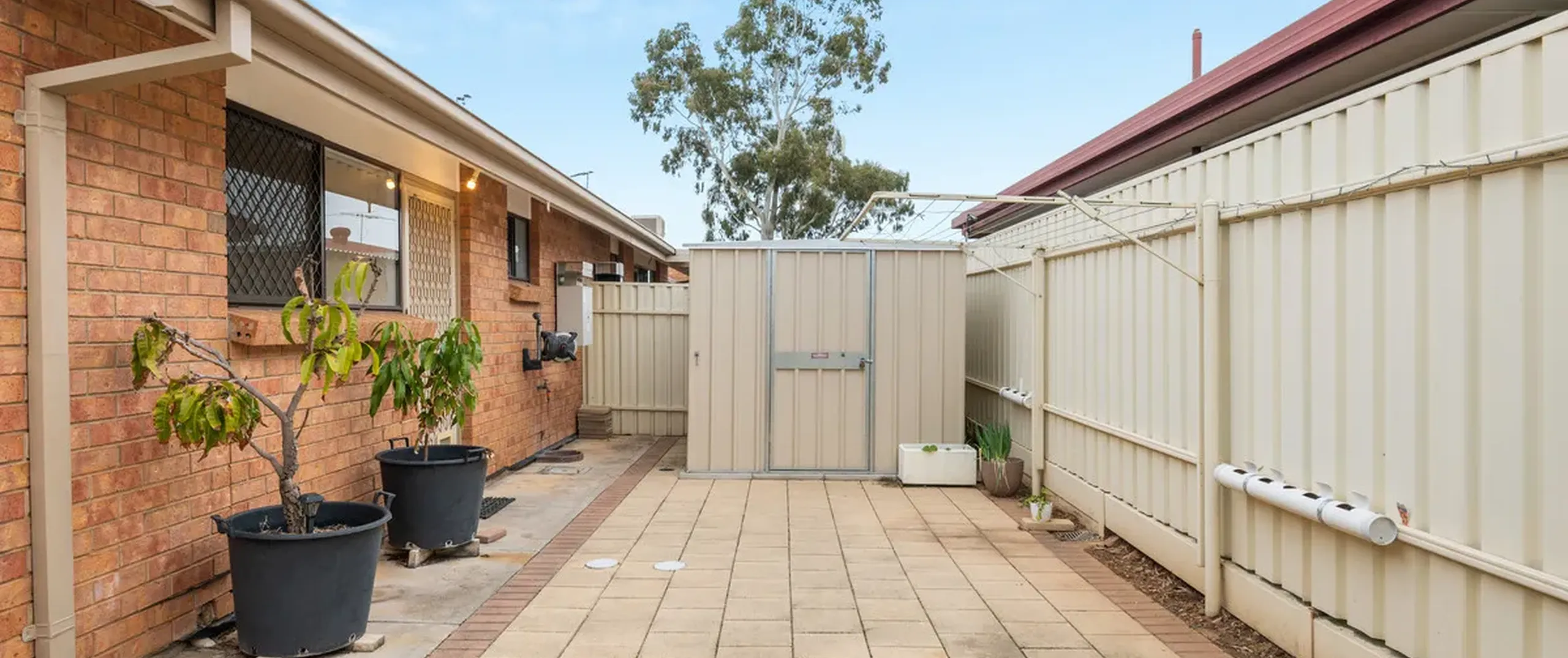 The light-filled living and dining room includes full-length windows that invite the sunshine to fill the home and in the generously sized bedroom you will discover an impressive sized wardrobe. There’s plenty of room to entertain with a wonderful open-air courtyard and a well-equipped kitchen, while a garden shed offers extra storage space and the property includes a private and secure carpark at the rear.