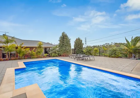 The centerpiece of this residence is its large and inviting entertaining area, perfect for hosting gatherings and creating lasting memories with family and friends. This space seamlessly connects to a sparkling swimming pool, creating a resort-like atmosphere for relaxation and enjoyment during warm summer days.