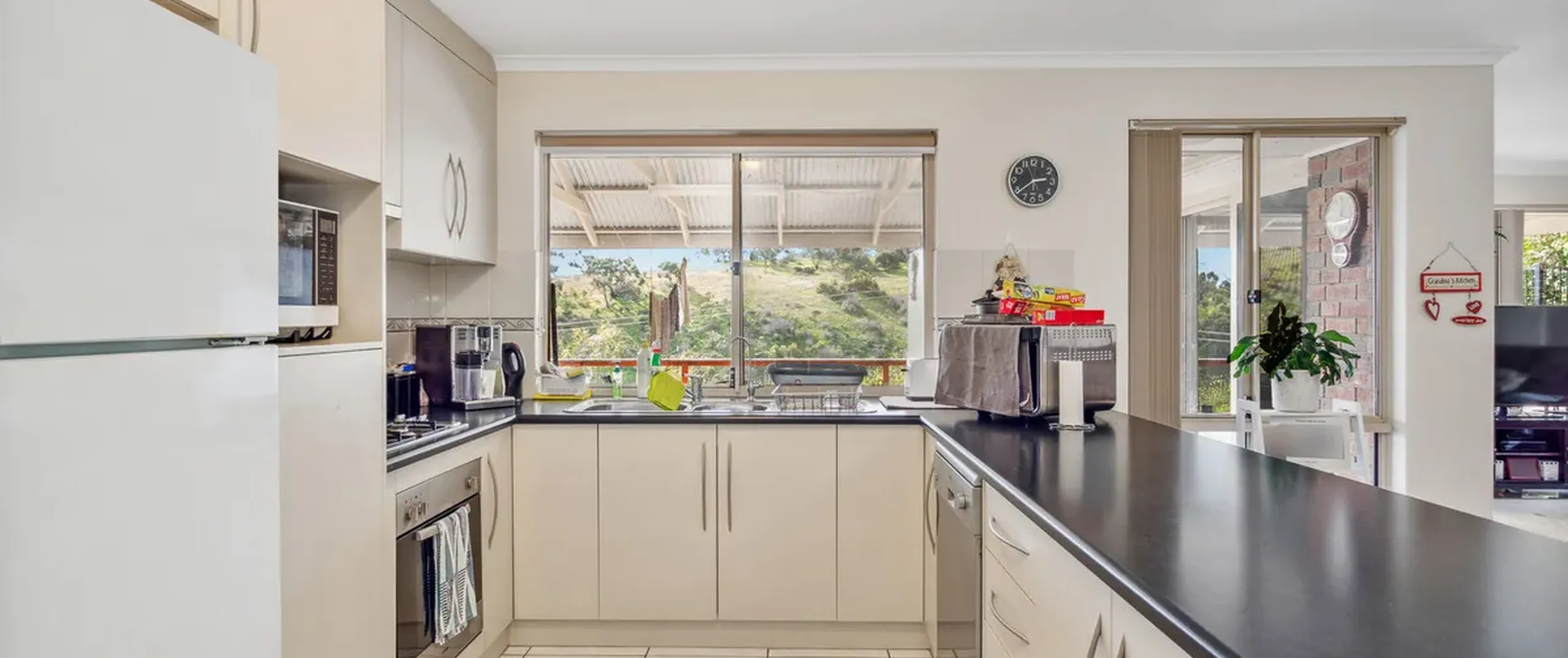 - Inviting kitchen with stainless appliances, ample cupboard and bench space