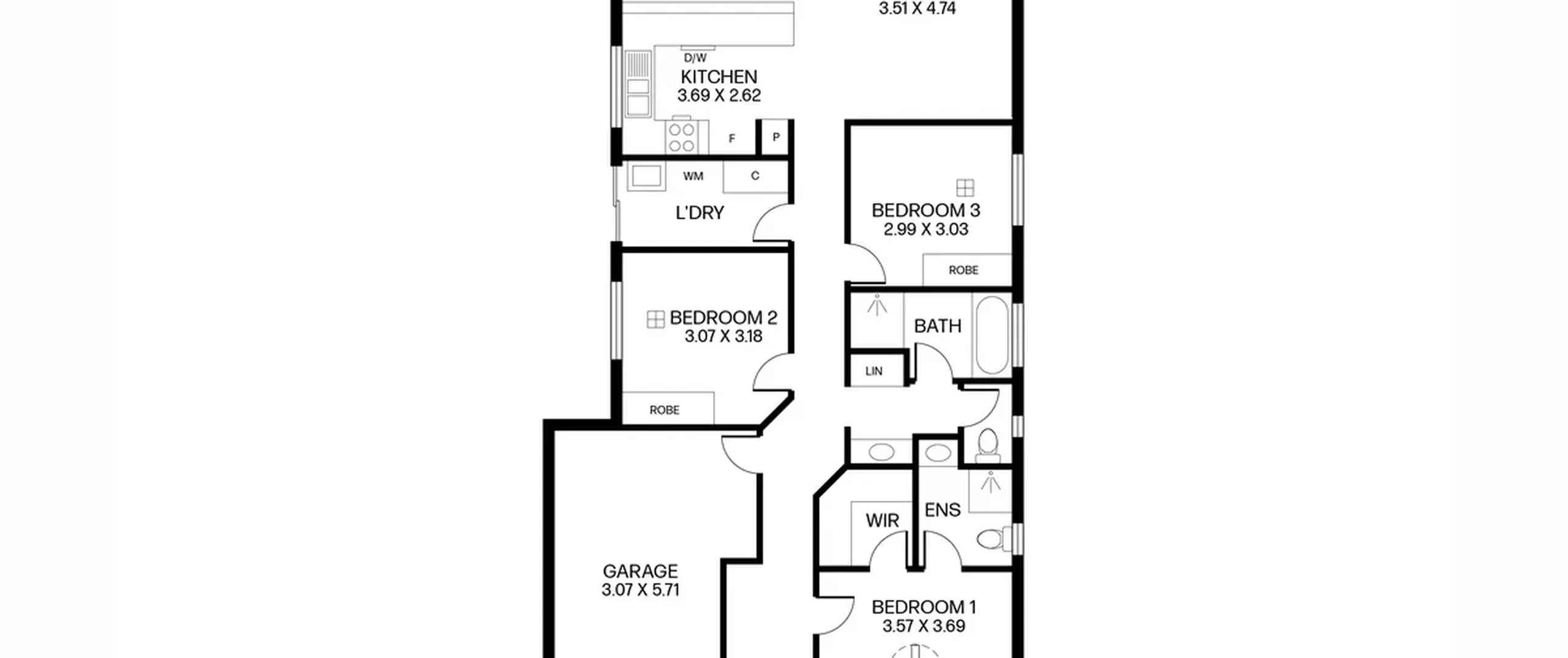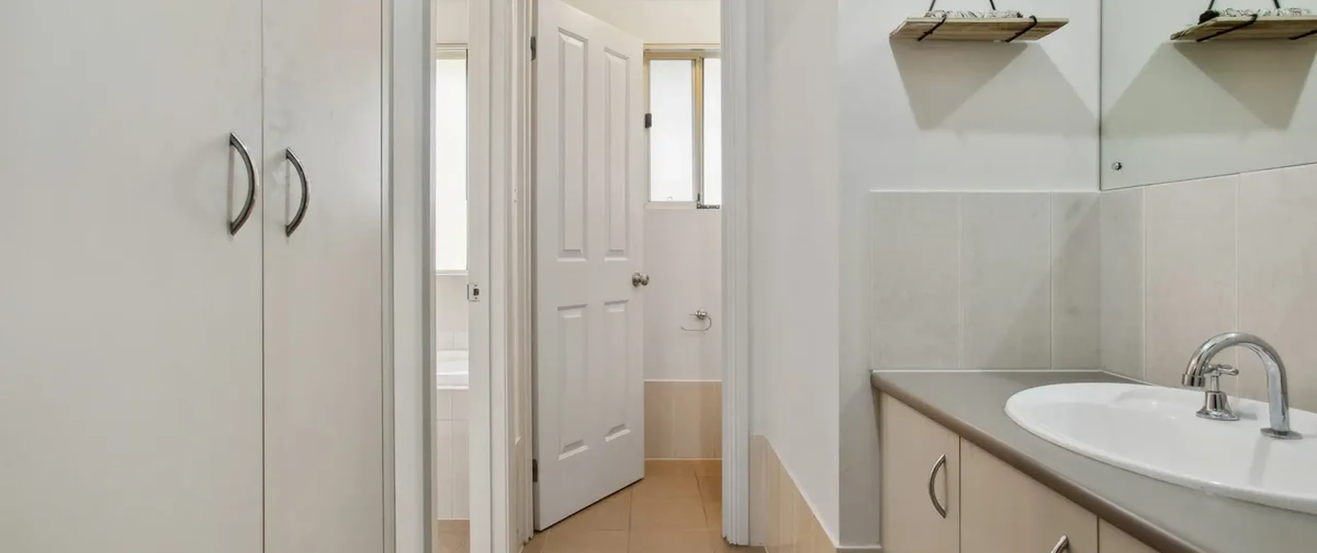 - Private laundry with built-in cupboard and direct external access