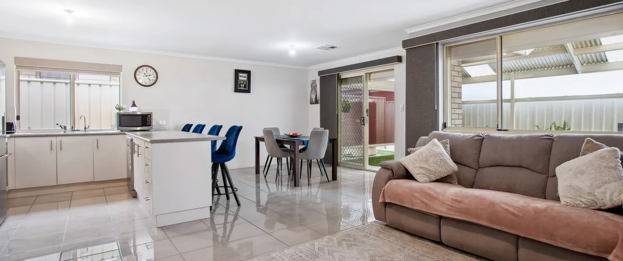 - Light-filled open-plan living and dining area