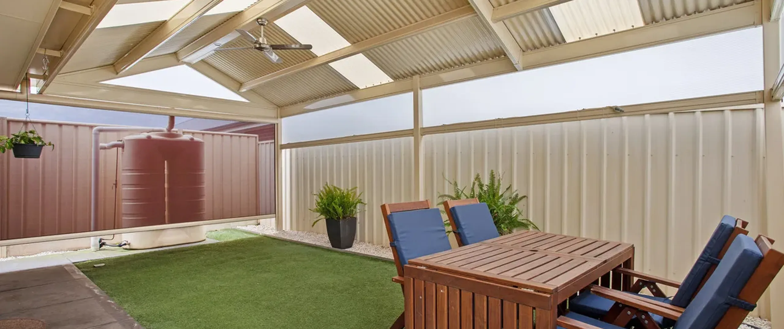 - Low-maintenance yard with AstroTurf