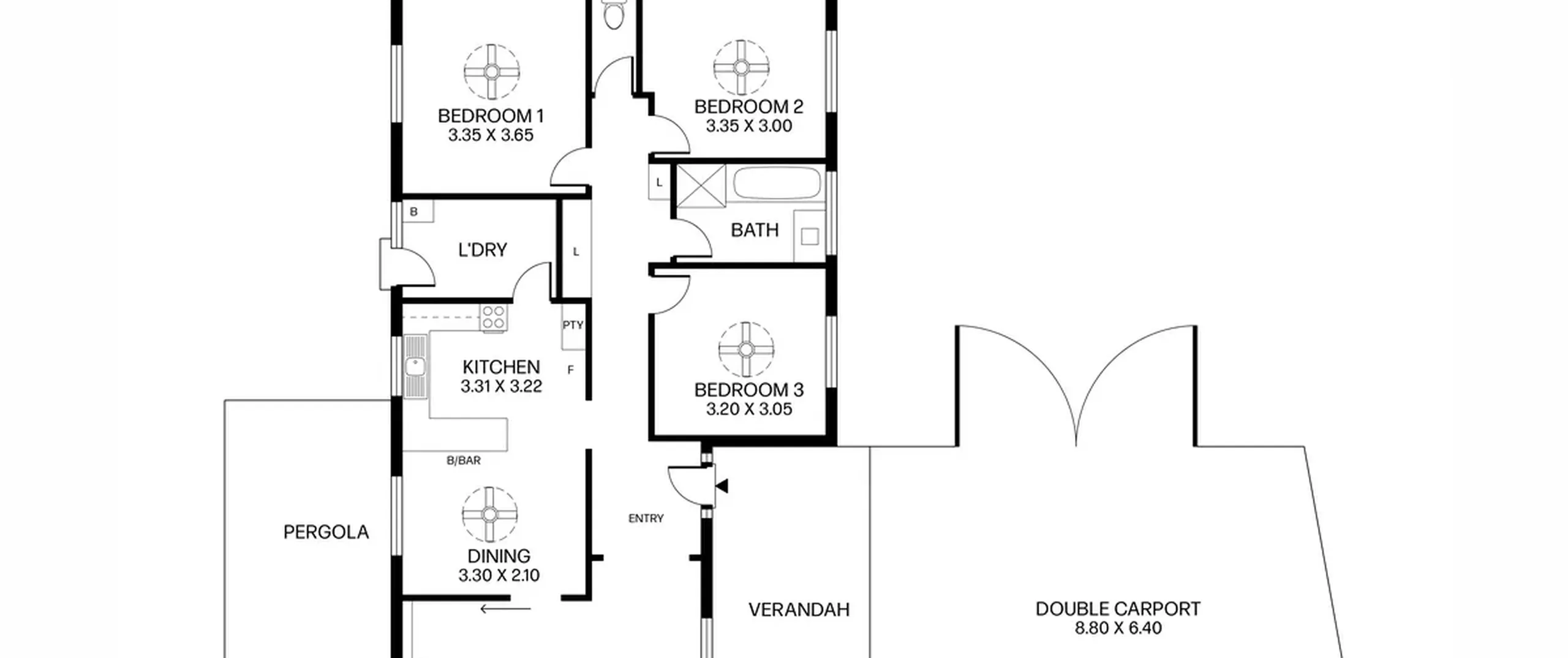 - 3 large bedrooms with ceiling fans