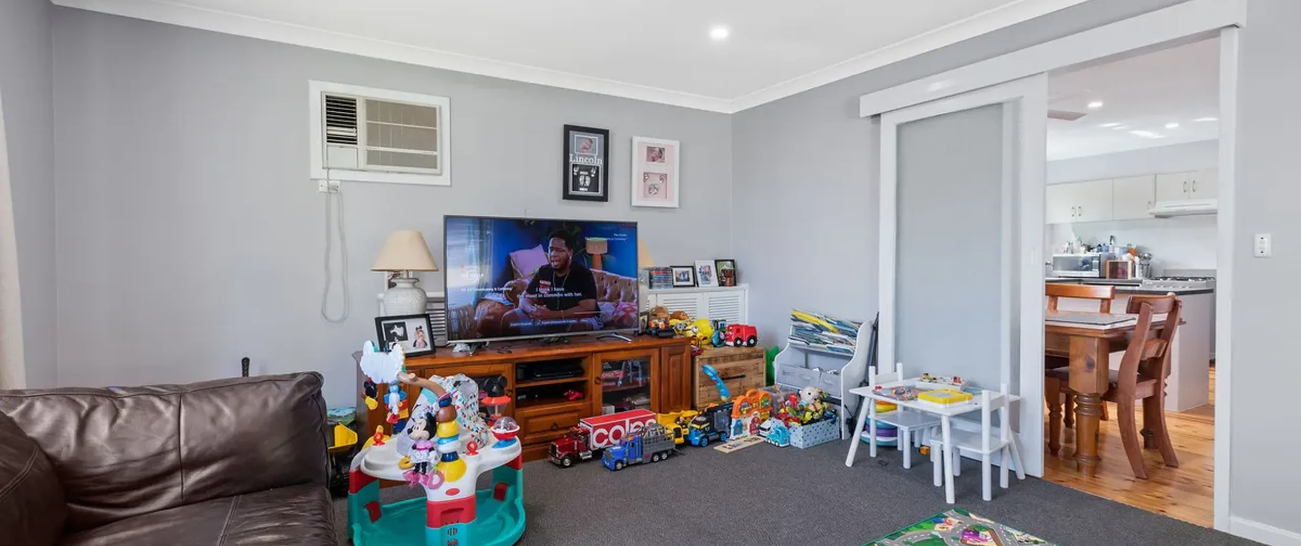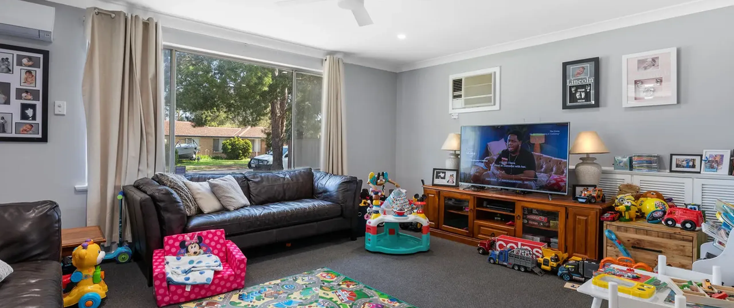 - Spacious lounge room with reverse cycle split system air conditioner and heater