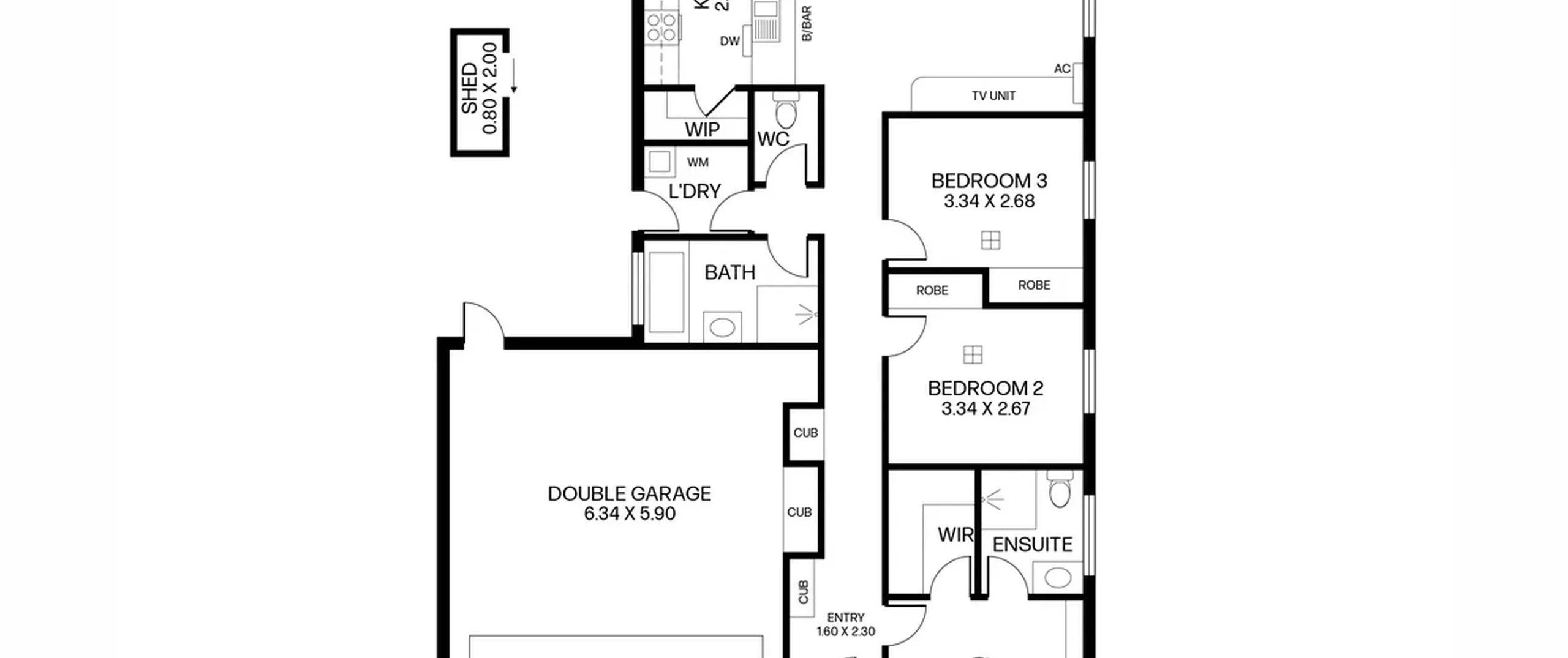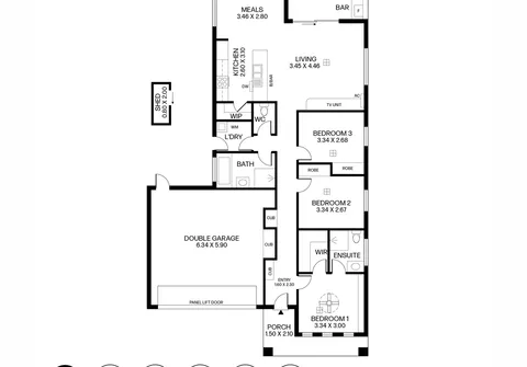 - Double garage with panel lift door, built-in cupboard and rear yard access