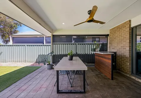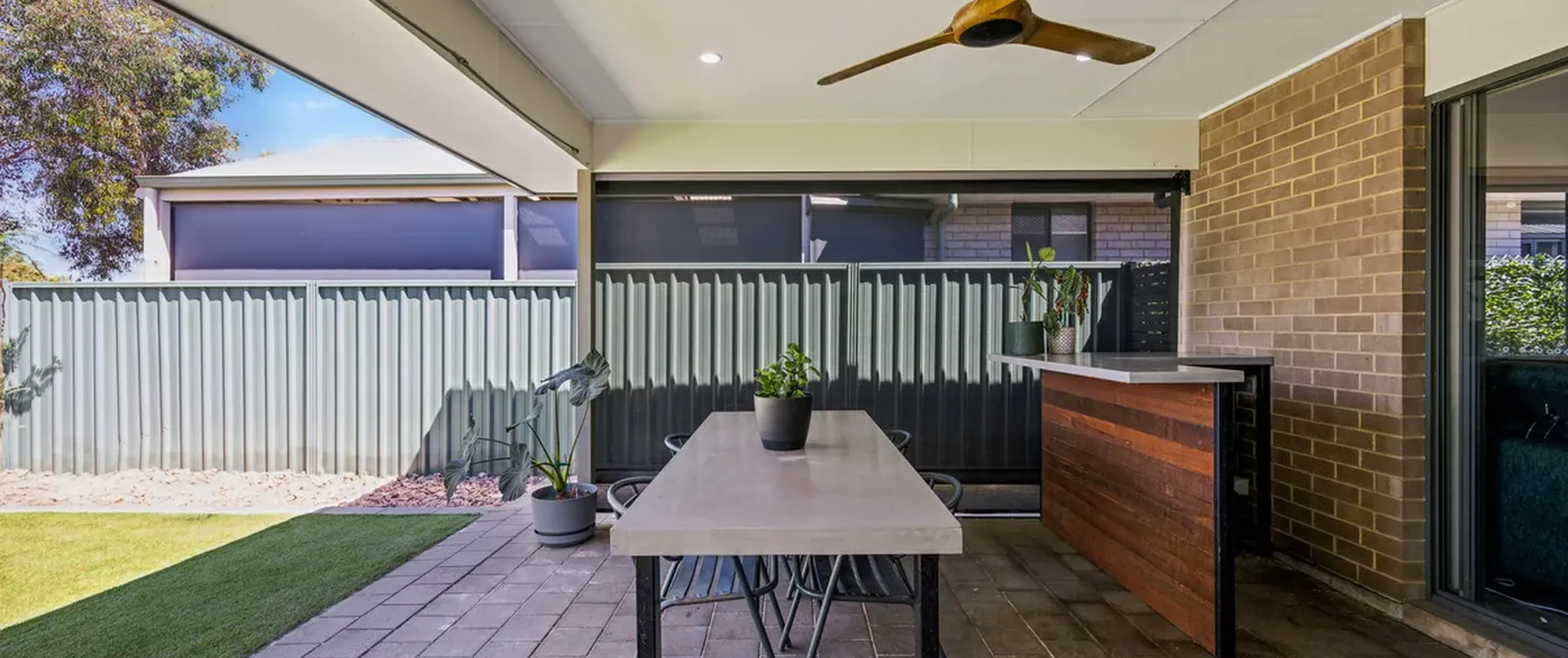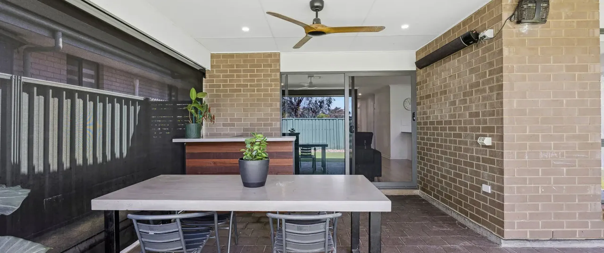 - Alfresco featuring a bar, café blind and ceiling fan, ideal for outdoor entertaining