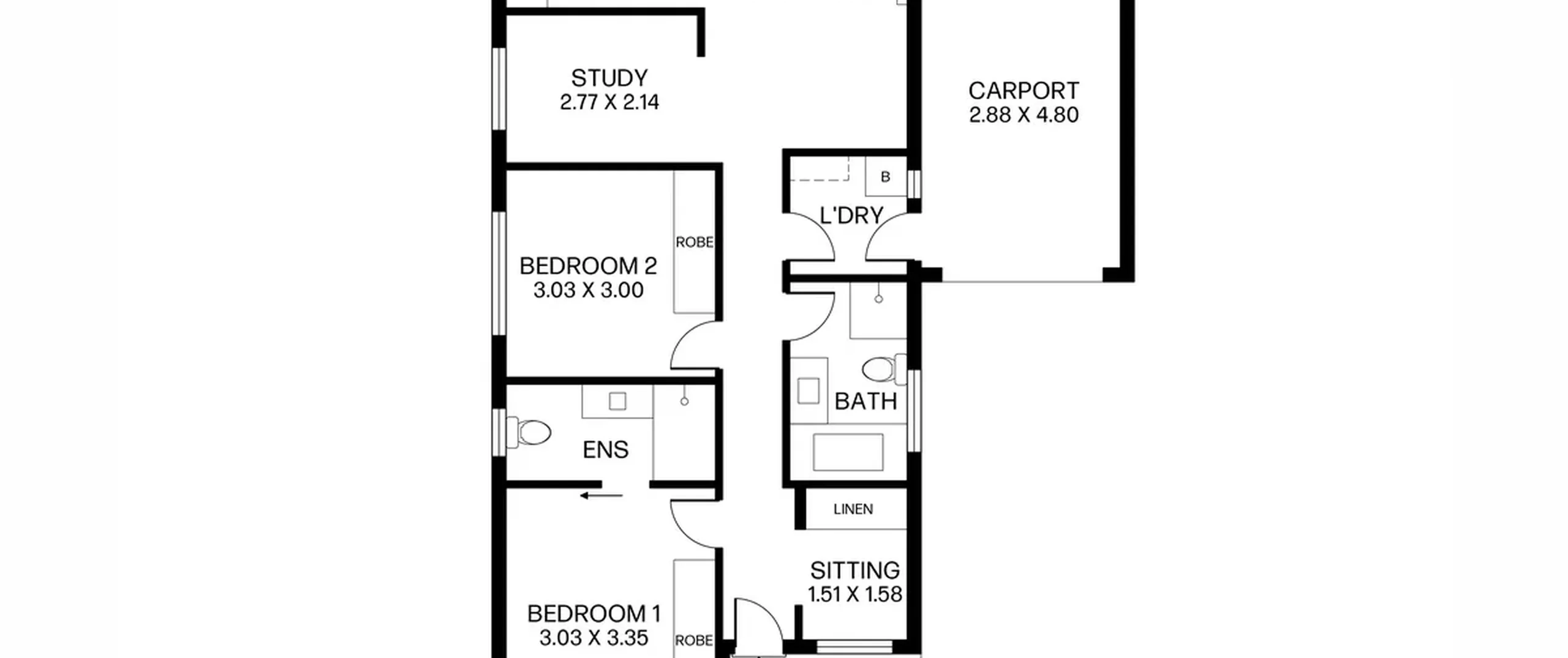 - Convenient study space, perfect for a home office, or potential to change to a 3rd bedroom