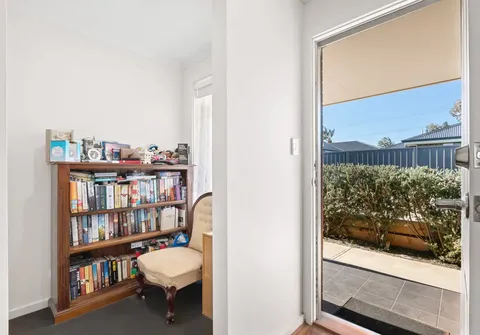 A central hallway draws you through from the entry to the open-plan and air-conditioned kitchen, dining and living area. A suite of stainless steel appliances, including a dishwasher and gas cooktop, is all yours in the kitchen and there’s an open study off the living area which is ideal for those who work from home.