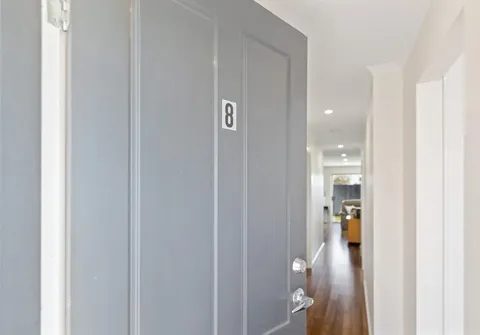 - Modern kitchen offers stainless steel appliances including gas cooktop and dishwasher