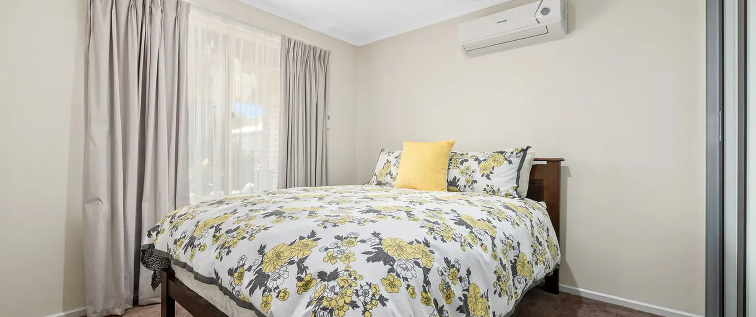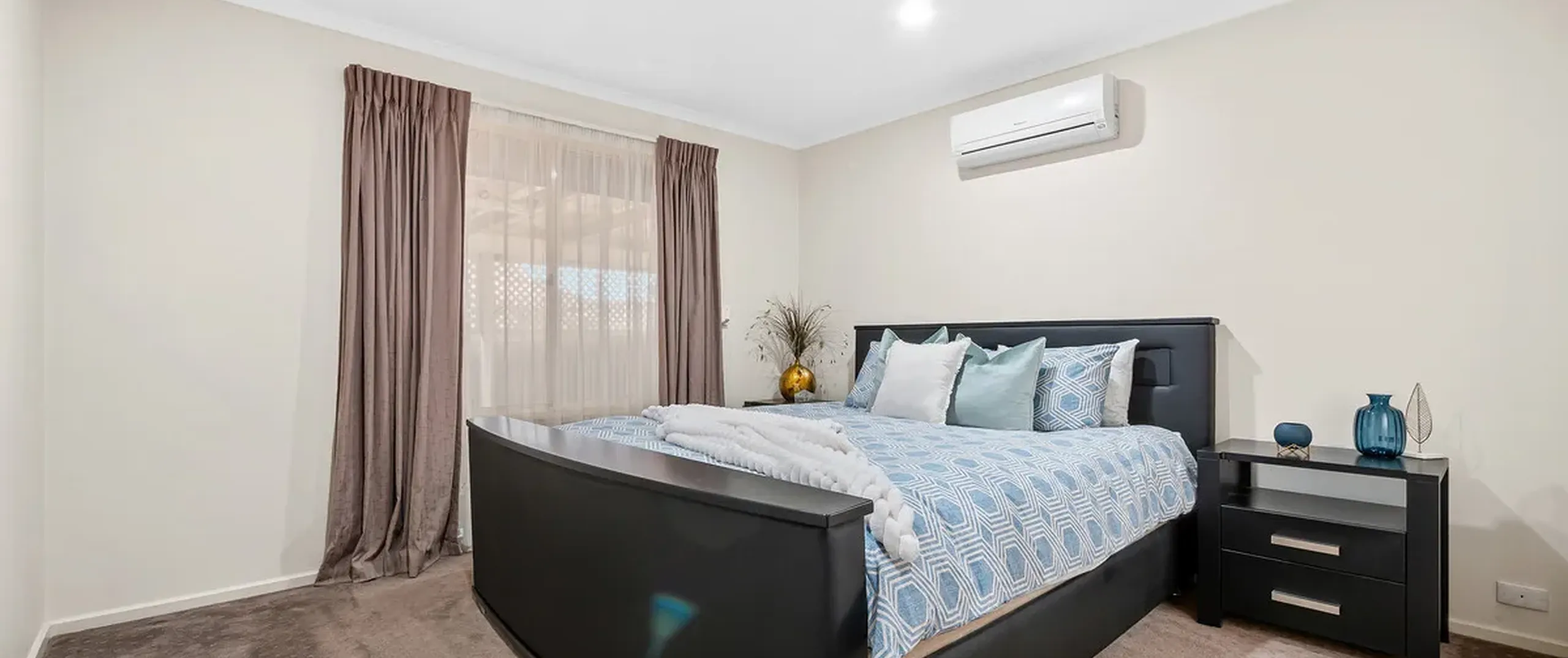 - Bedroom 2 of good proportions with built-in robe and split system air conditioner