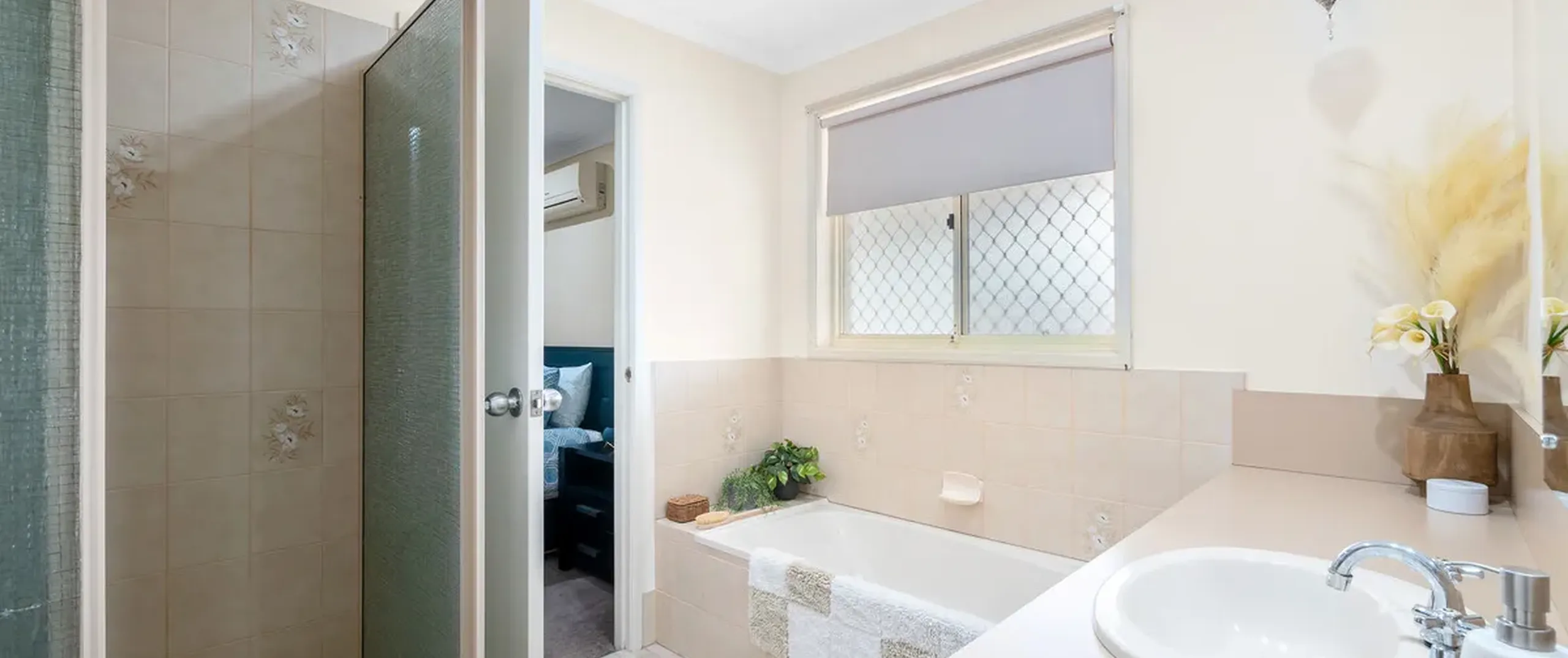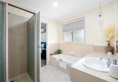 - Large main bedroom with walk-in robe, split system air conditioner and direct access to two-way bathroom