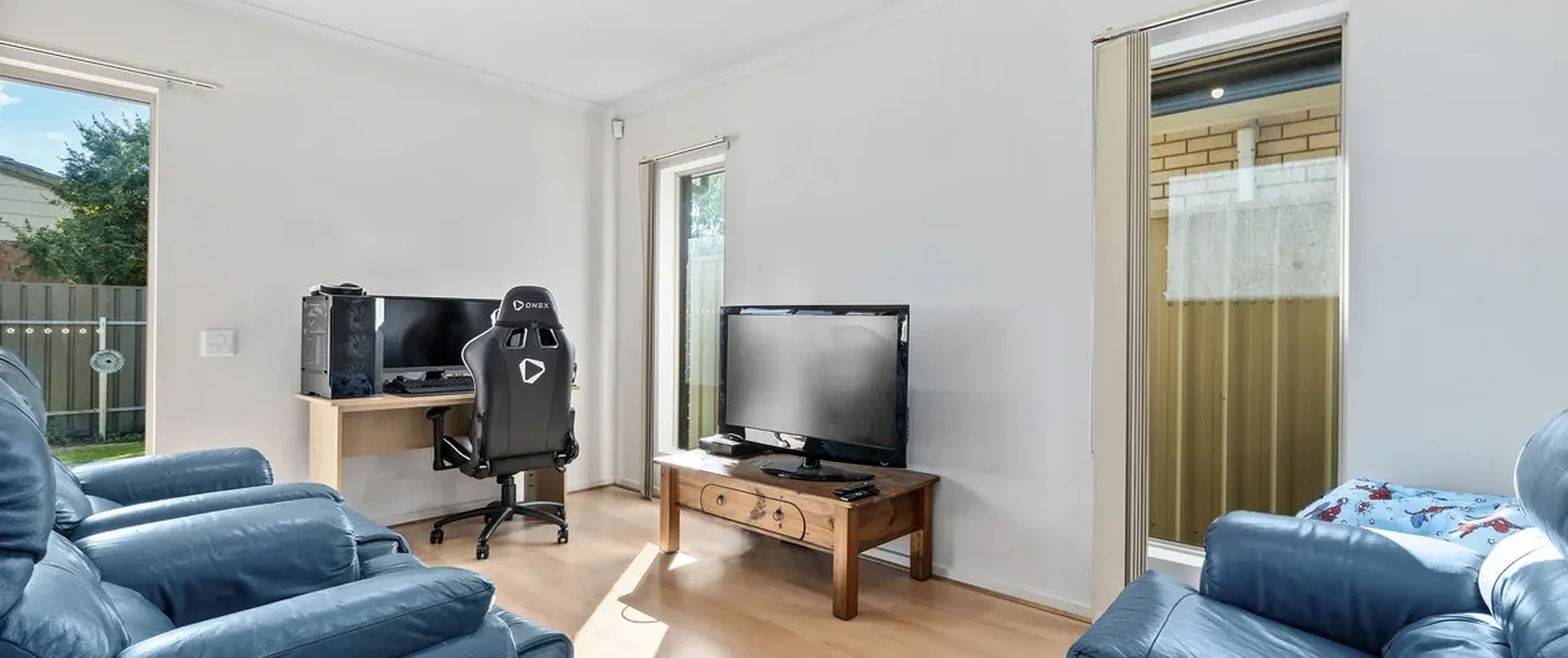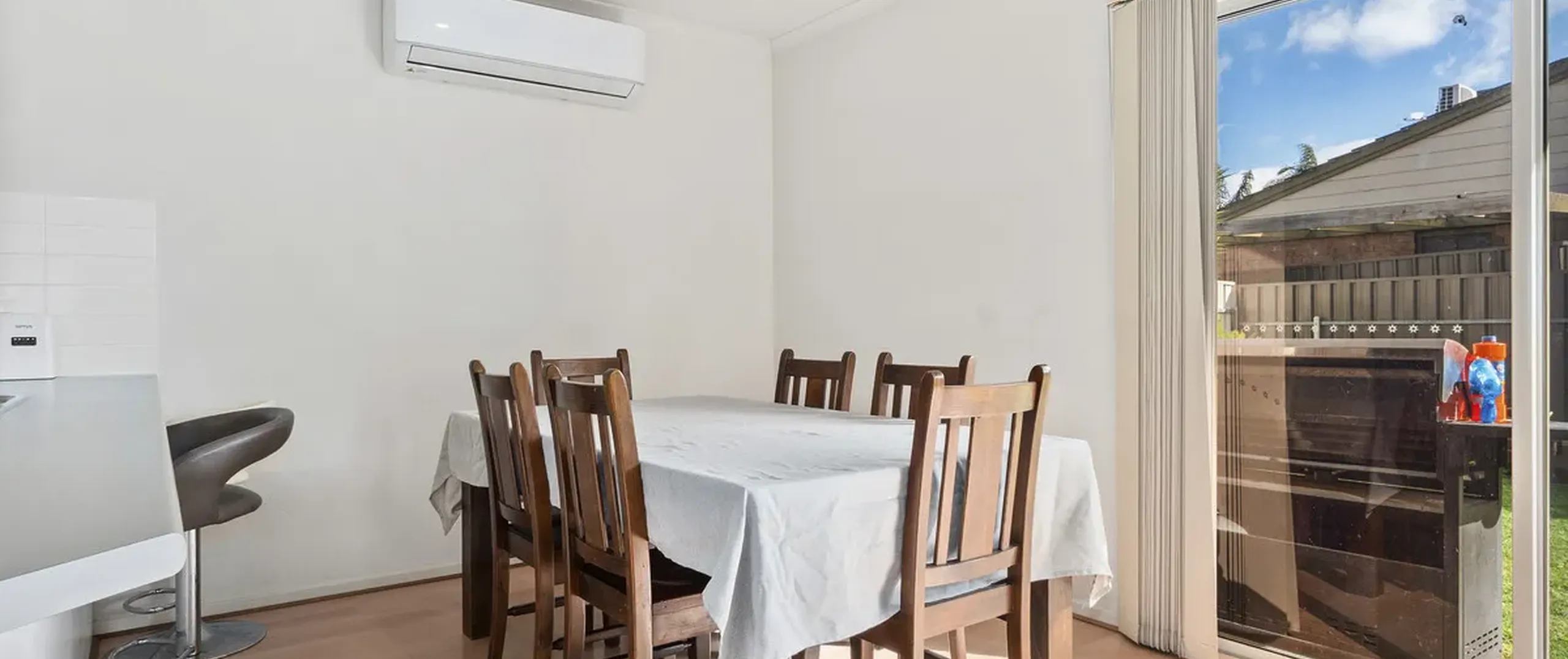 - Light filled open plan living and meals area with reverse cycle split system air conditioner