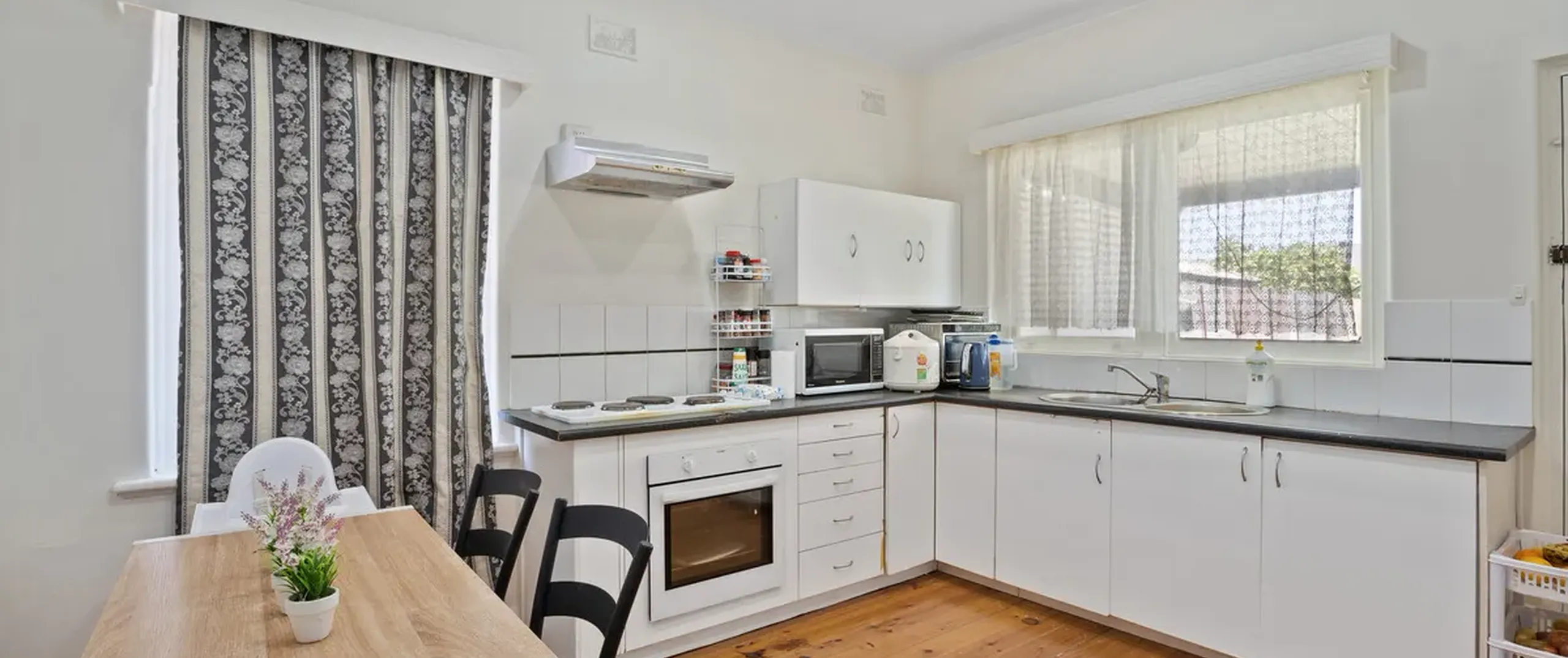 Inside, there are three good-sized bedrooms, a central main bathroom and a charming lounge room upon entry. A separate dining and kitchen are perfectly positioned and well-equipped to suit the cook of the home.