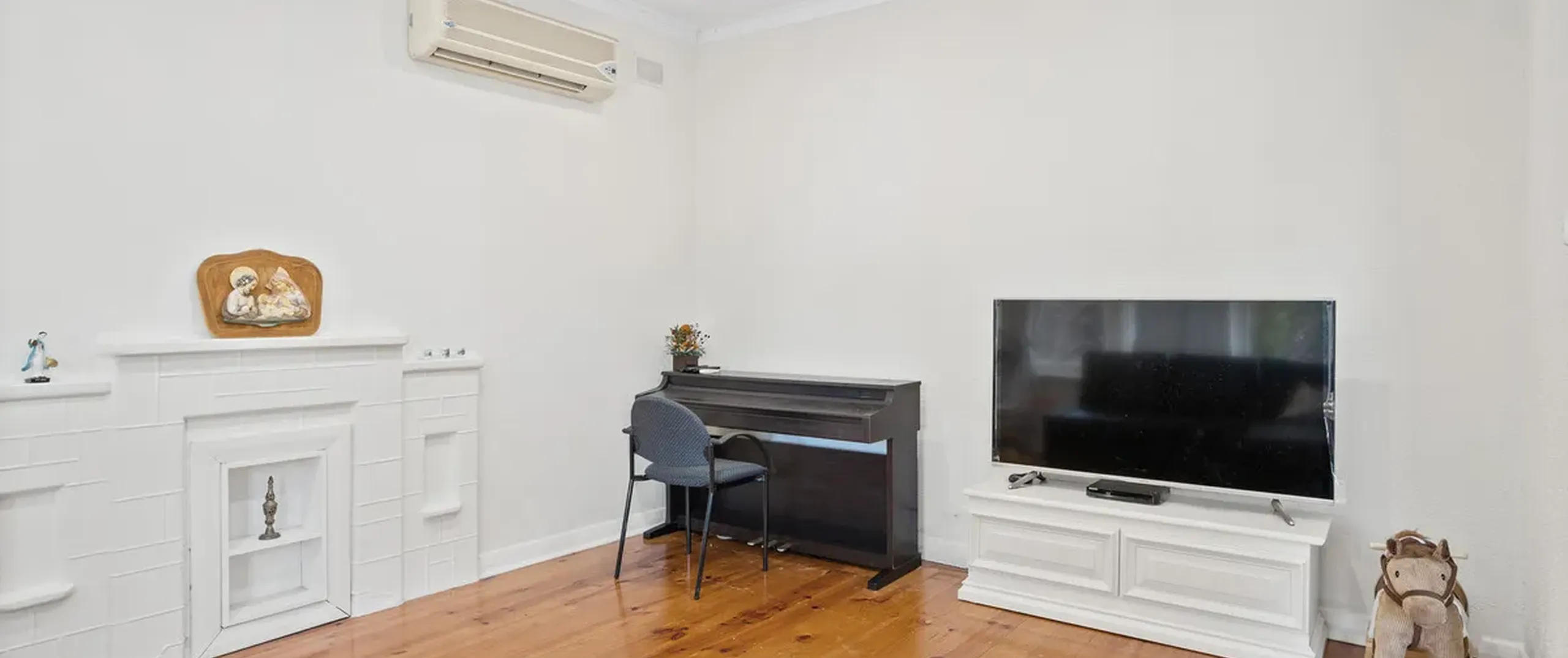 - Bright light-filled lounge with feature mantel place and air conditioner
